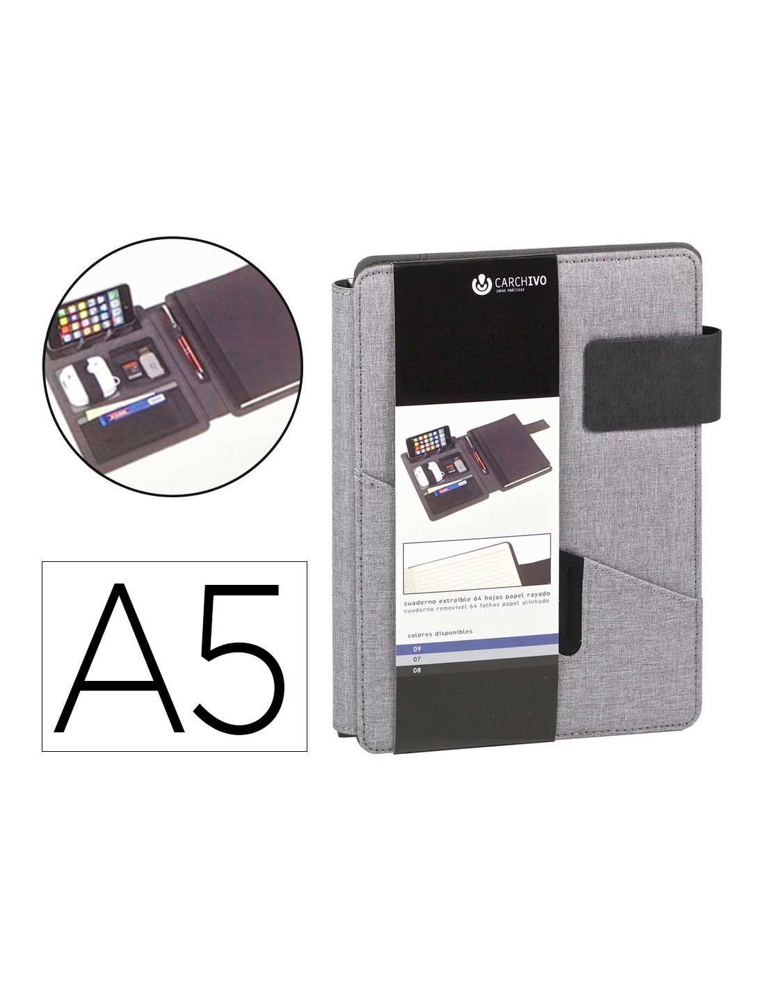 CARCHIVOCarpeta portafolios carchivo venture din a5 con cuaderno y soporte smartphone color gris