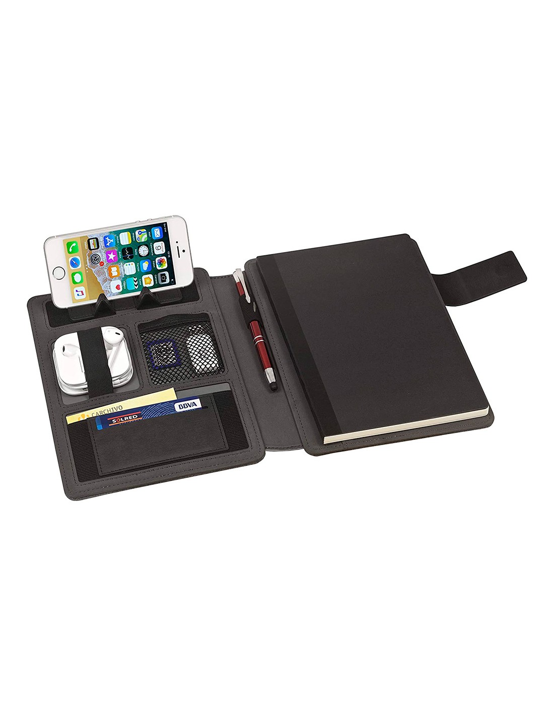 Carpeta portafolios carchivo venture din a5 con cuaderno y soporte smartphone color gris