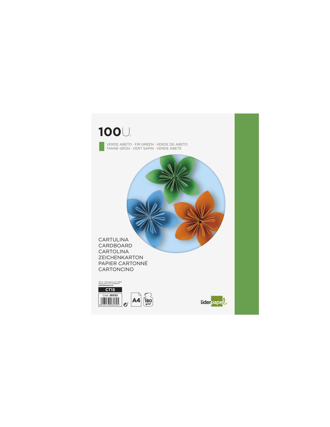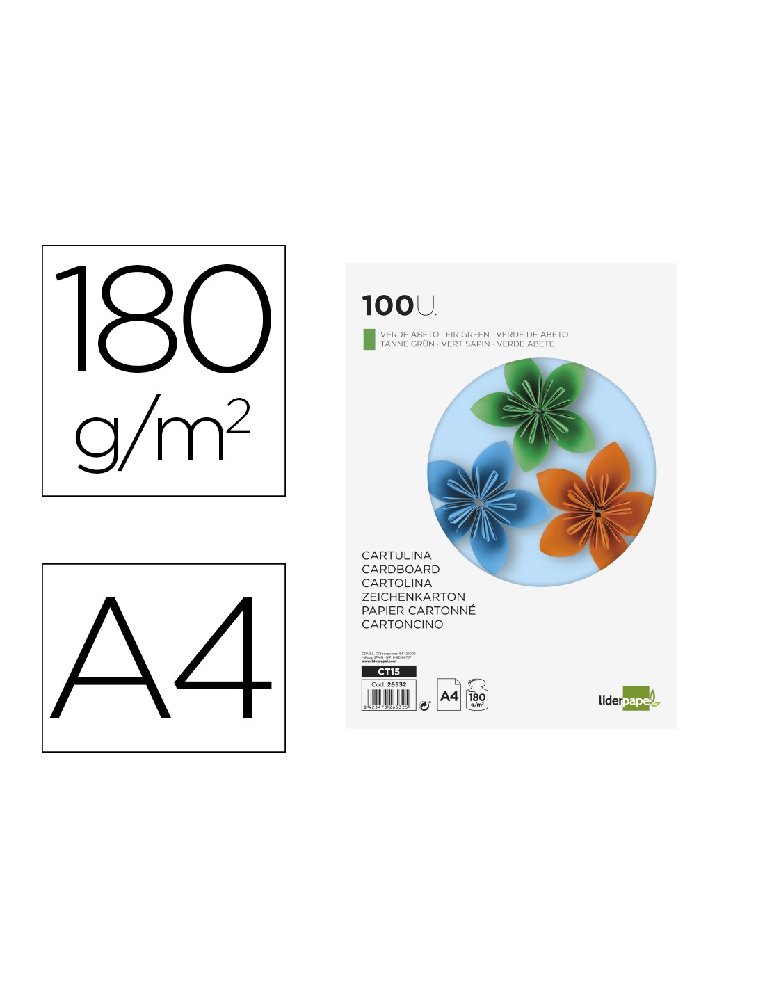 Cartulina liderpapel a4 180g/m2 verde abeto paquete de 100 hojas