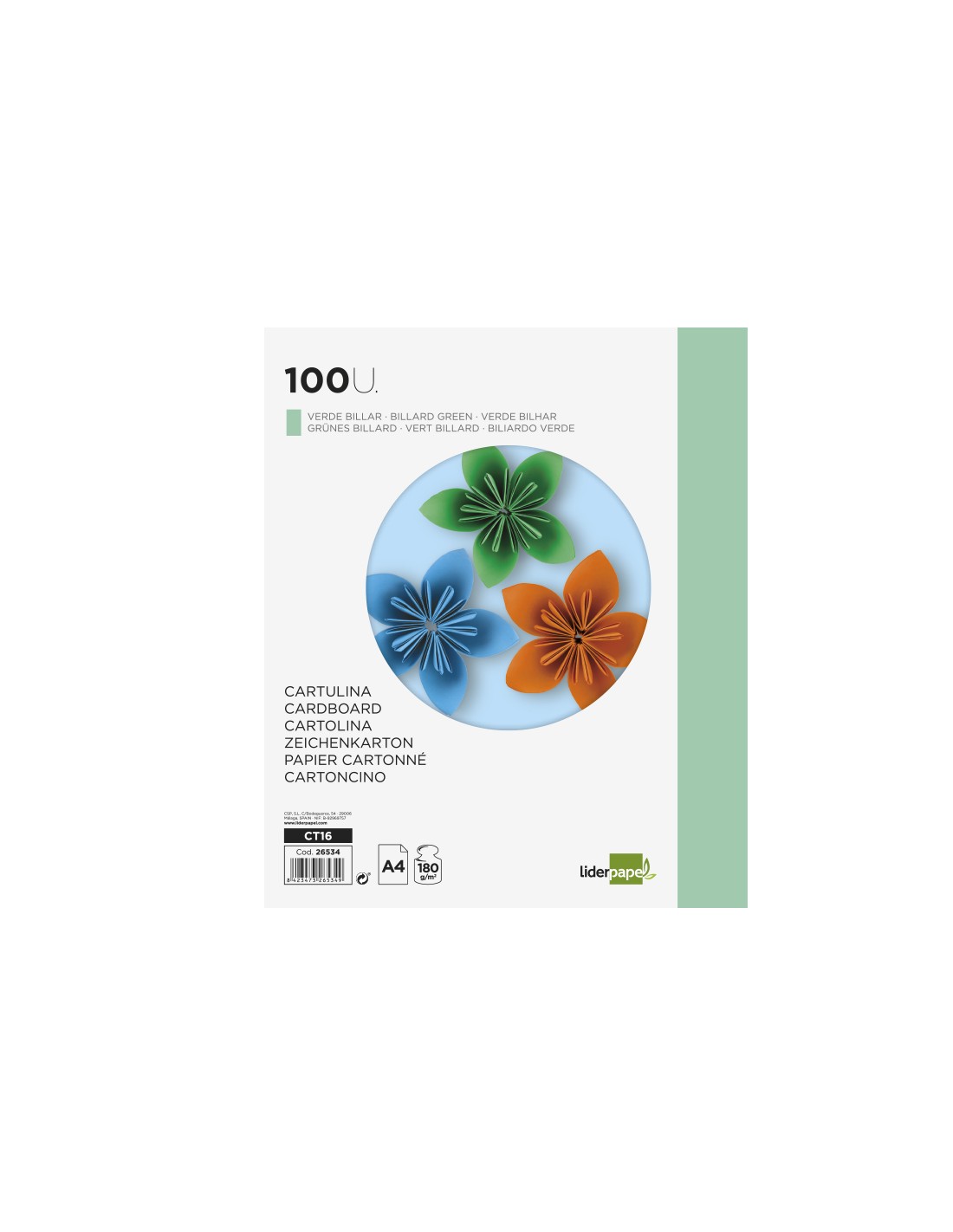 Cartulina liderpapel a4 180g/m2 verde billar paquete de 100 hojas