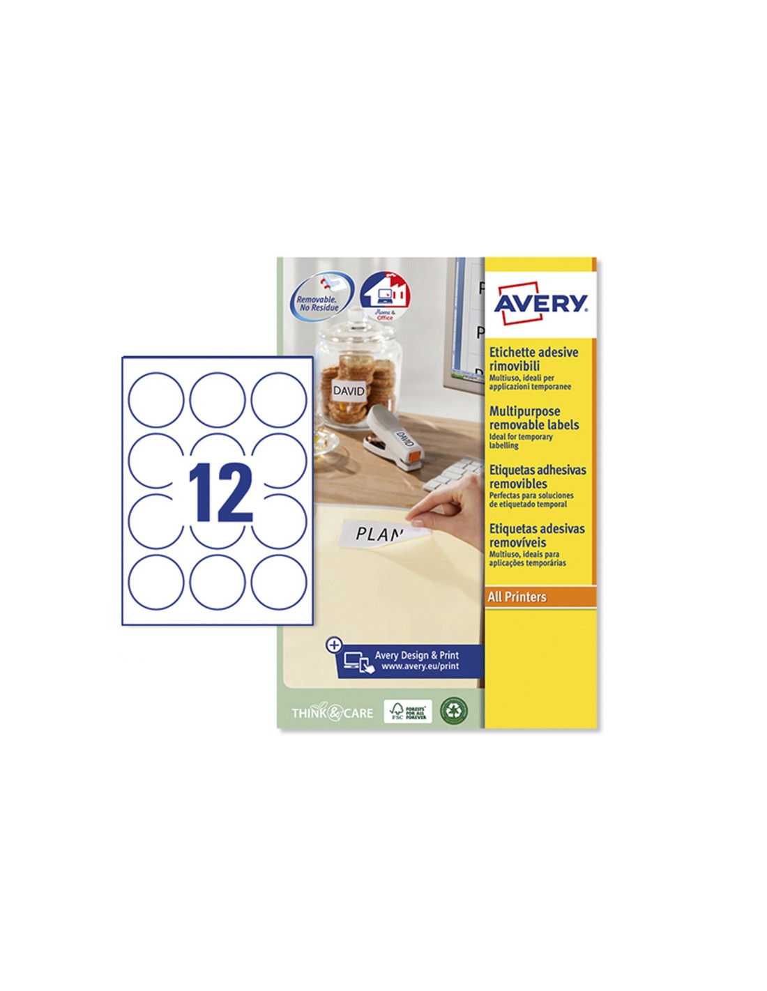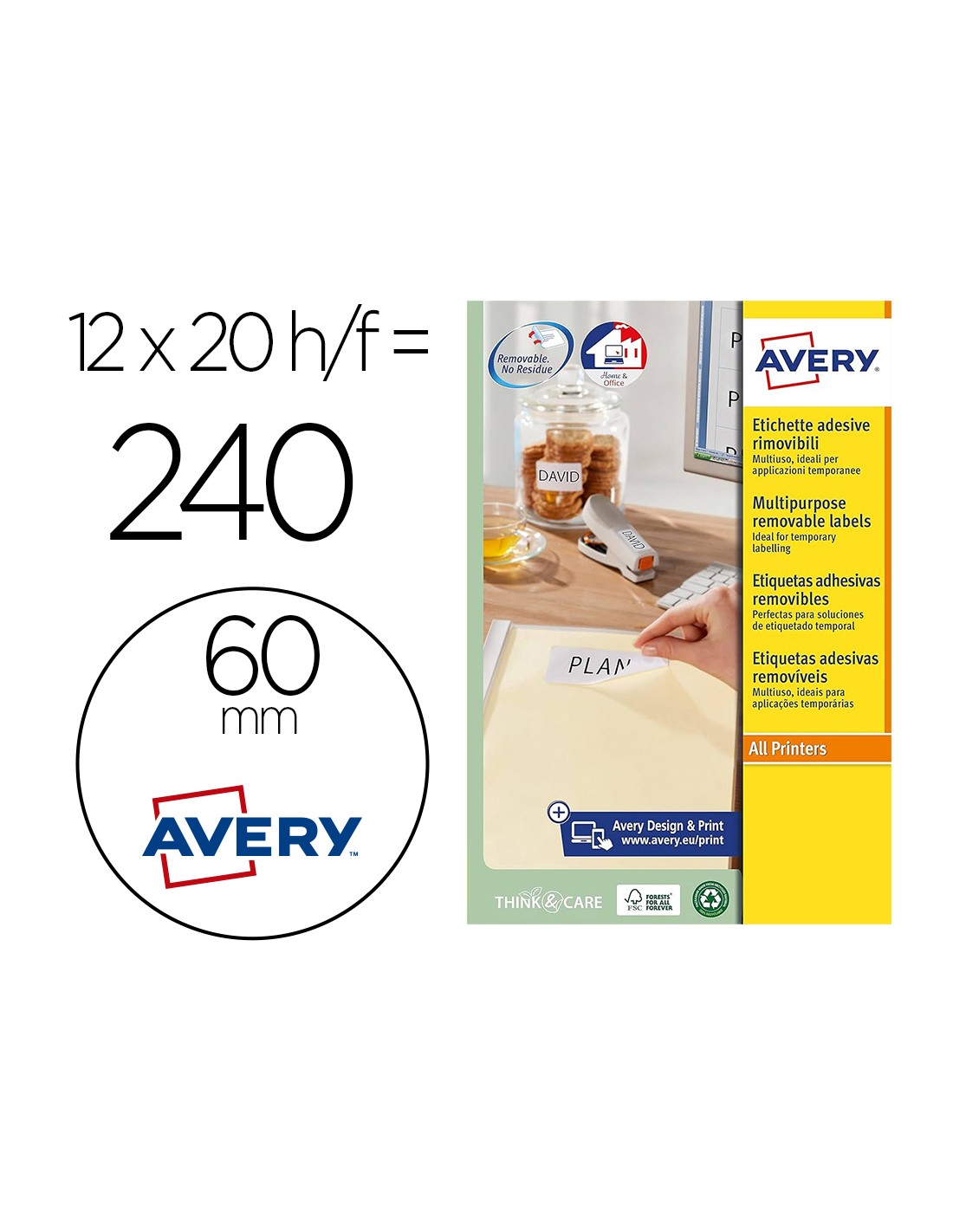 Etiqueta adhesiva avery blanca redonda removible para laser ink-jet fotocopiadora 60 mm caja de 240 unidades