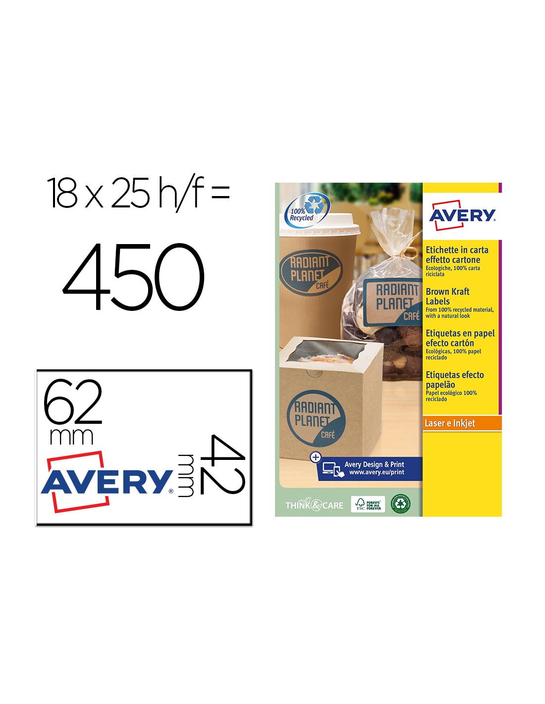 Etiqueta adhesiva avery kraft efecto carton rectangular 62x42 mm removible para laser ink-jet caja de 160 unidades
