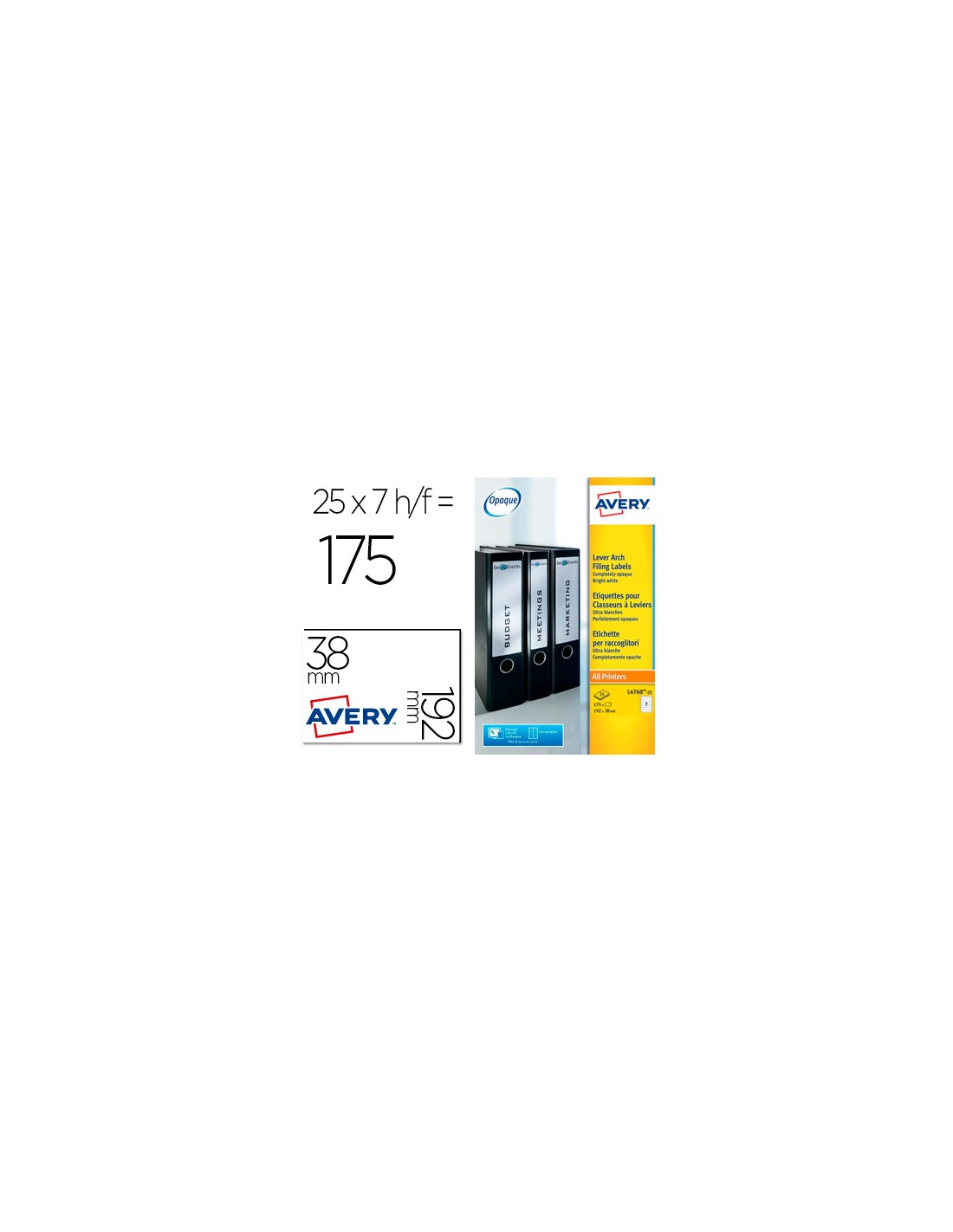 Etiqueta adhesiva avery permanente blanca 38x192 mm para lomo archivador laser caja de 175 unidades