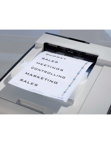 Etiquetas blancas de papel con adhesivo permanente y cubriente. Ideales para etiquetar cajas de archivo. Nueva tecnología ultragrip, agarre seguro sin atascamientos para impresiones perfectas. Gracias a la tecnología blockout, al especial material cubriente permite ocultar la etiqueta anterior. Color blanco Para lomo ancho de 6 cm. Caja de 20 hojas. Se puede utilizarel software crea e imprime gratuito de Avery para realizar el diseño de l as etiquetas con pocos clics.