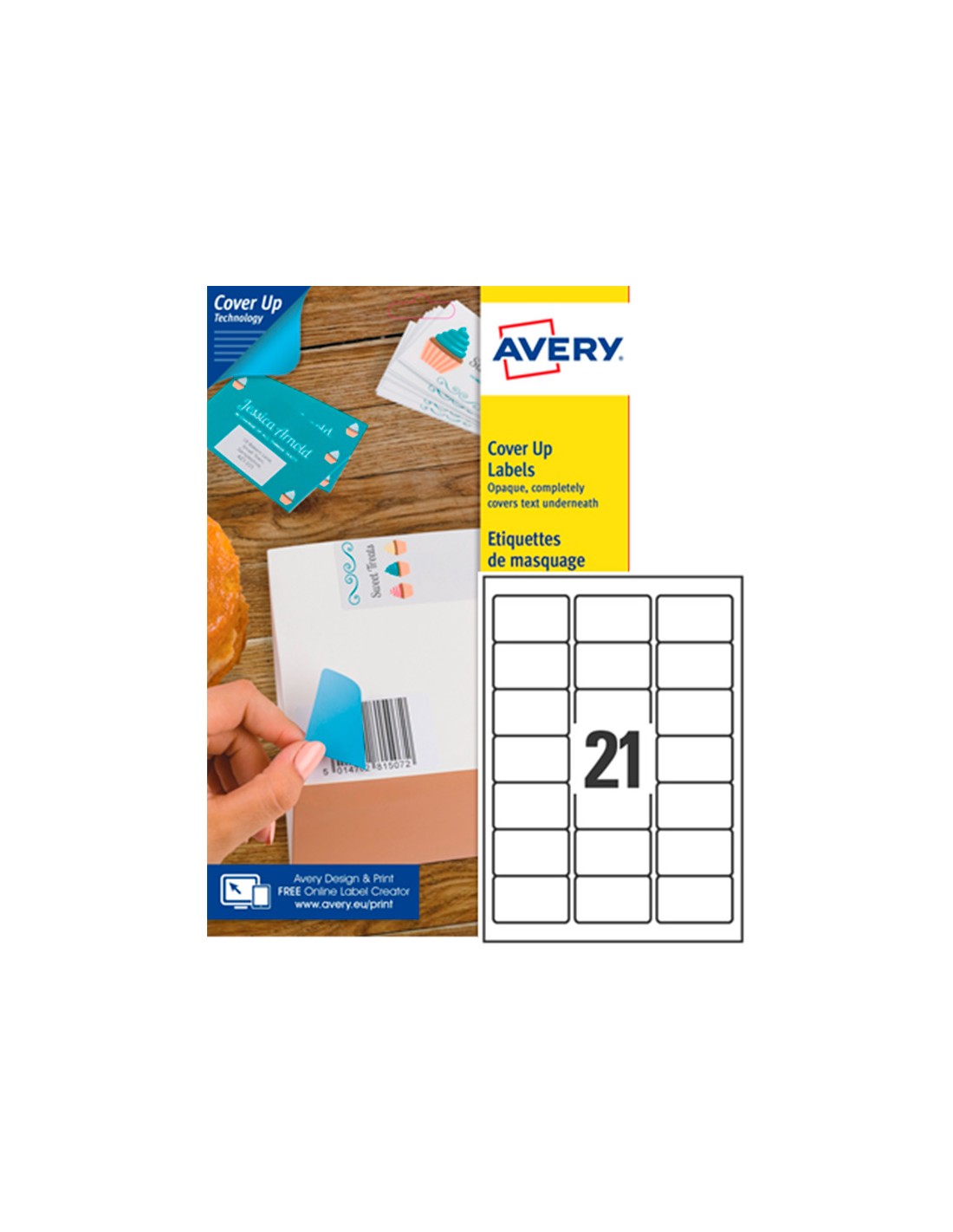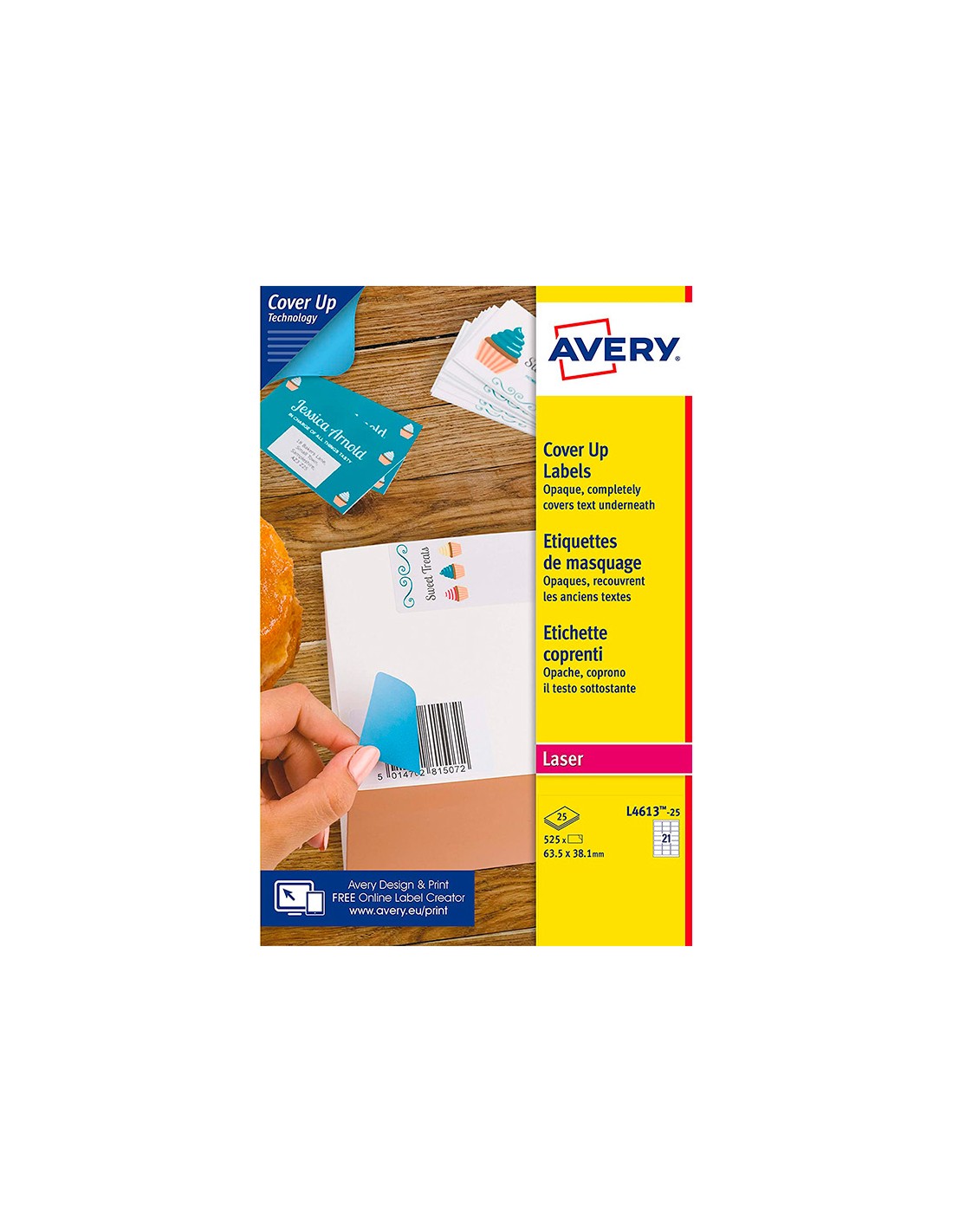Etiqueta adhesiva cubriente avery permanente para impresora laser blanca 63,5x 38,1 mm caja de 525 unidades