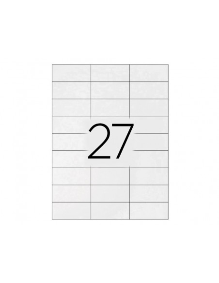 Etiquetas blancas autoadhesivas adecuadas para impresoras ink-jet, láser y fotocopiadoras. Cada caja, según tamaño, incluye 25 o 100 hojas DIN A4 en las que se presentan las etiquetas.