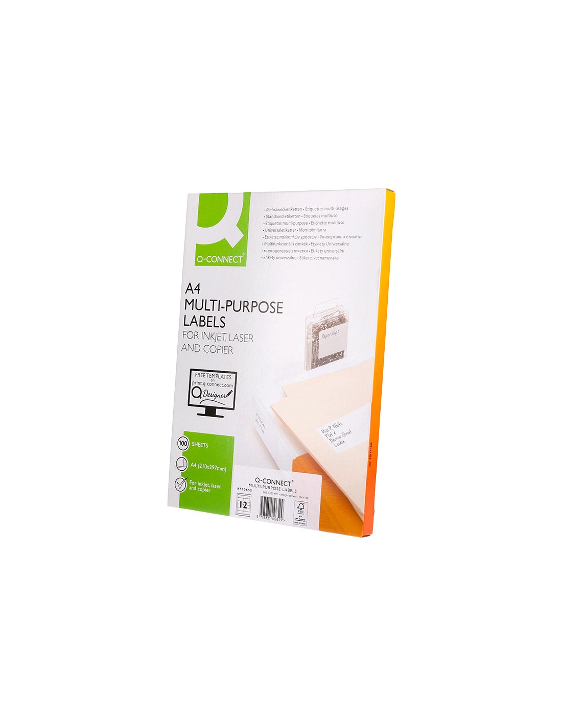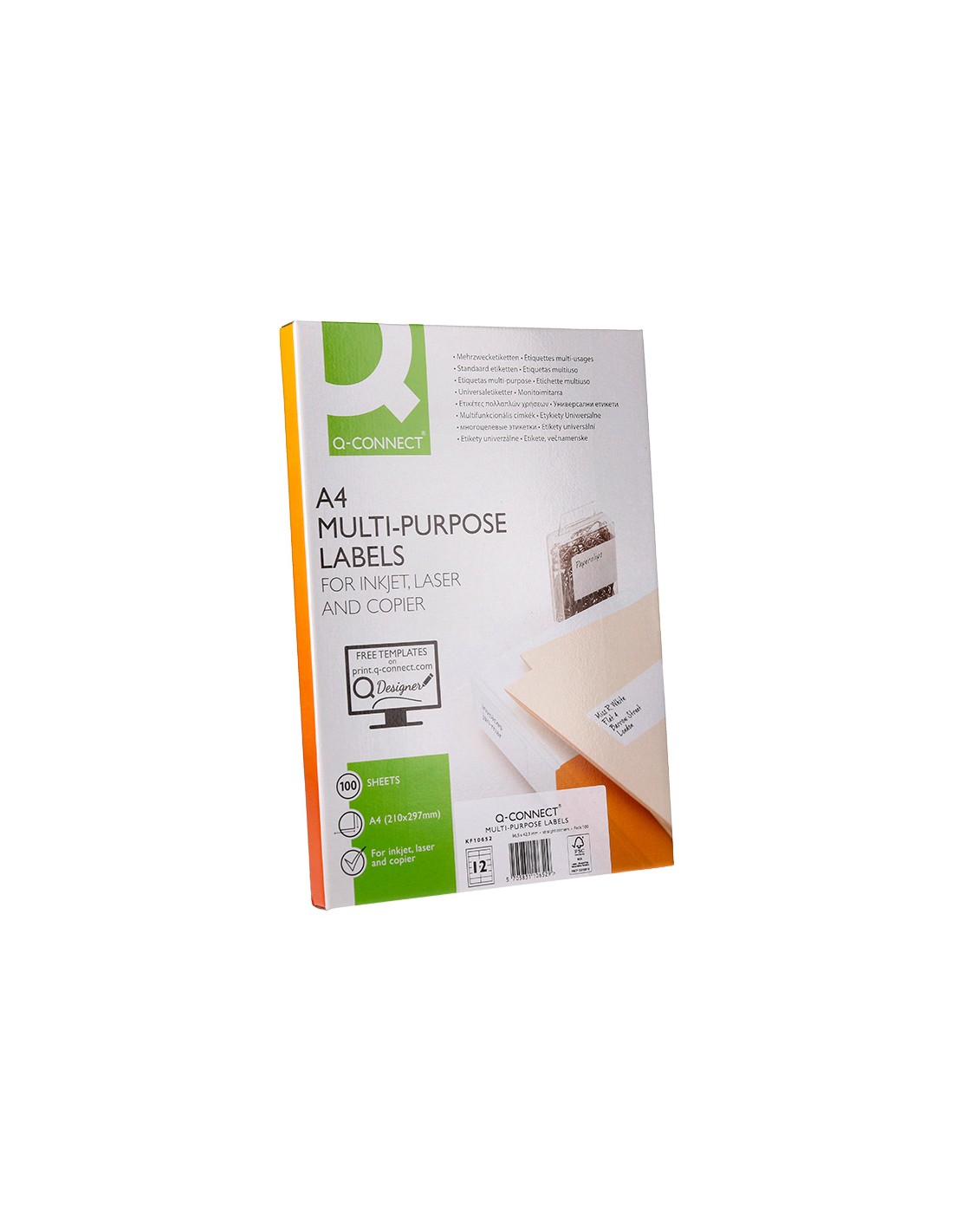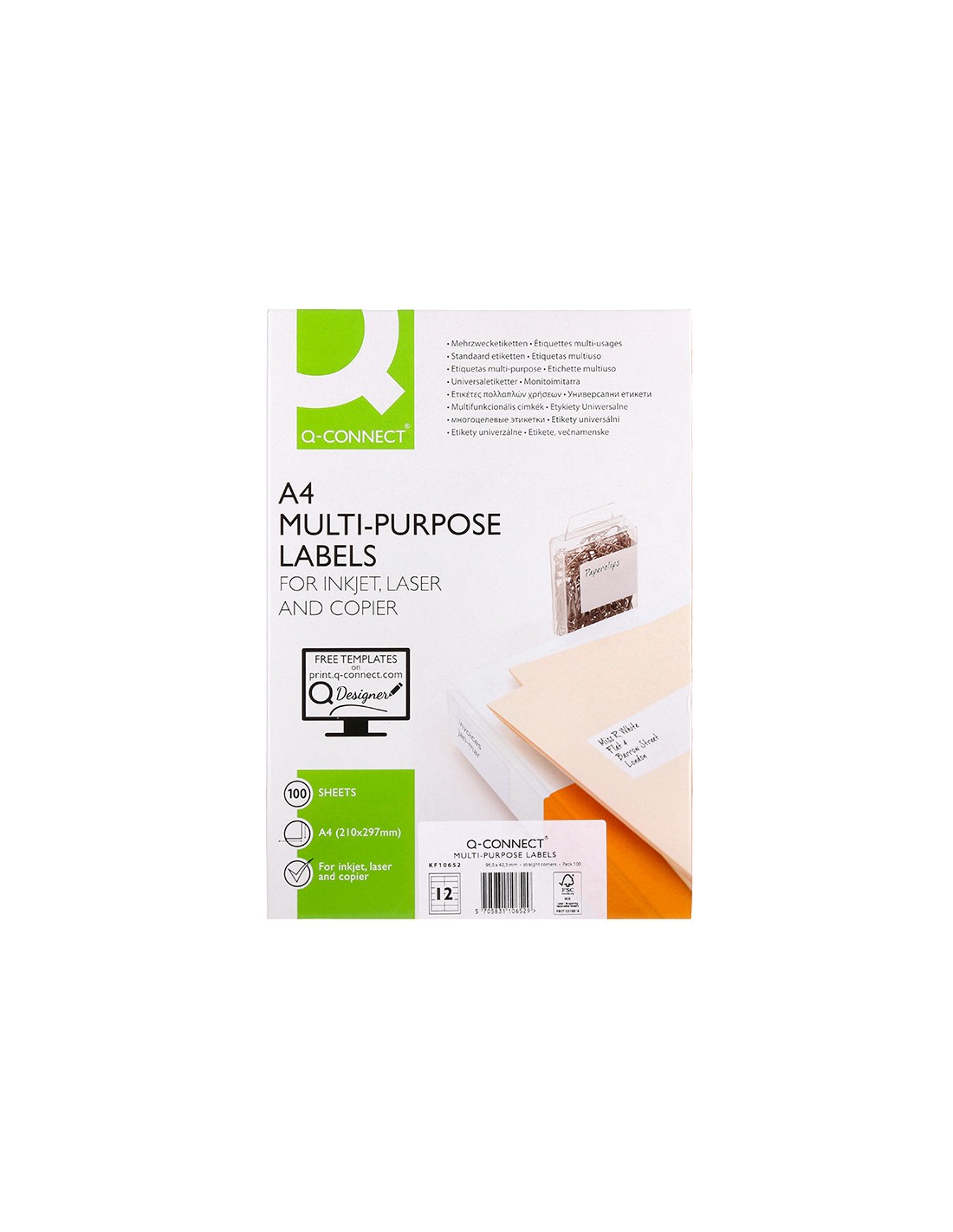 Etiqueta adhesiva q-connect kf10652 tamaño 96,5x42,3 mm fotocopiadora laser ink-jet caja con 100 hojas din a4