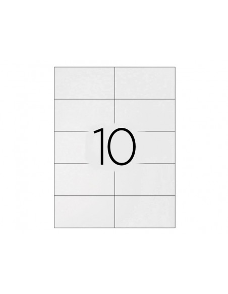 Etiquetas blancas autoadhesivas adecuadas para impresoras ink-jet, láser y fotocopiadoras. Cada caja, según tamaño, incluye 25 o 100 hojas DIN A4 en las que se presentan las etiquetas.
