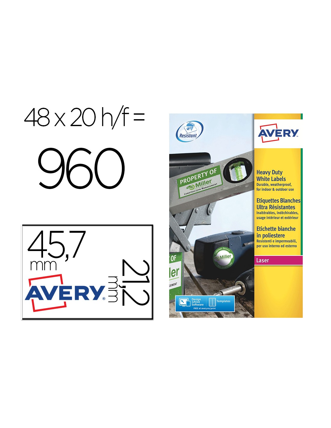 Etiqueta adhesiva resistente avery poliester plata 1,2 mm 45,7x21,2 mm laser pack de 960unidades
