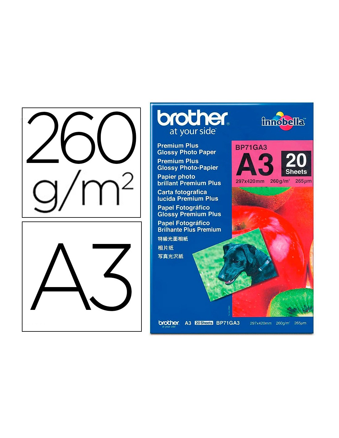 Papel fotografico brother premium plus brillo din a3 260g/m2 ink-jet pack de 20 hojas