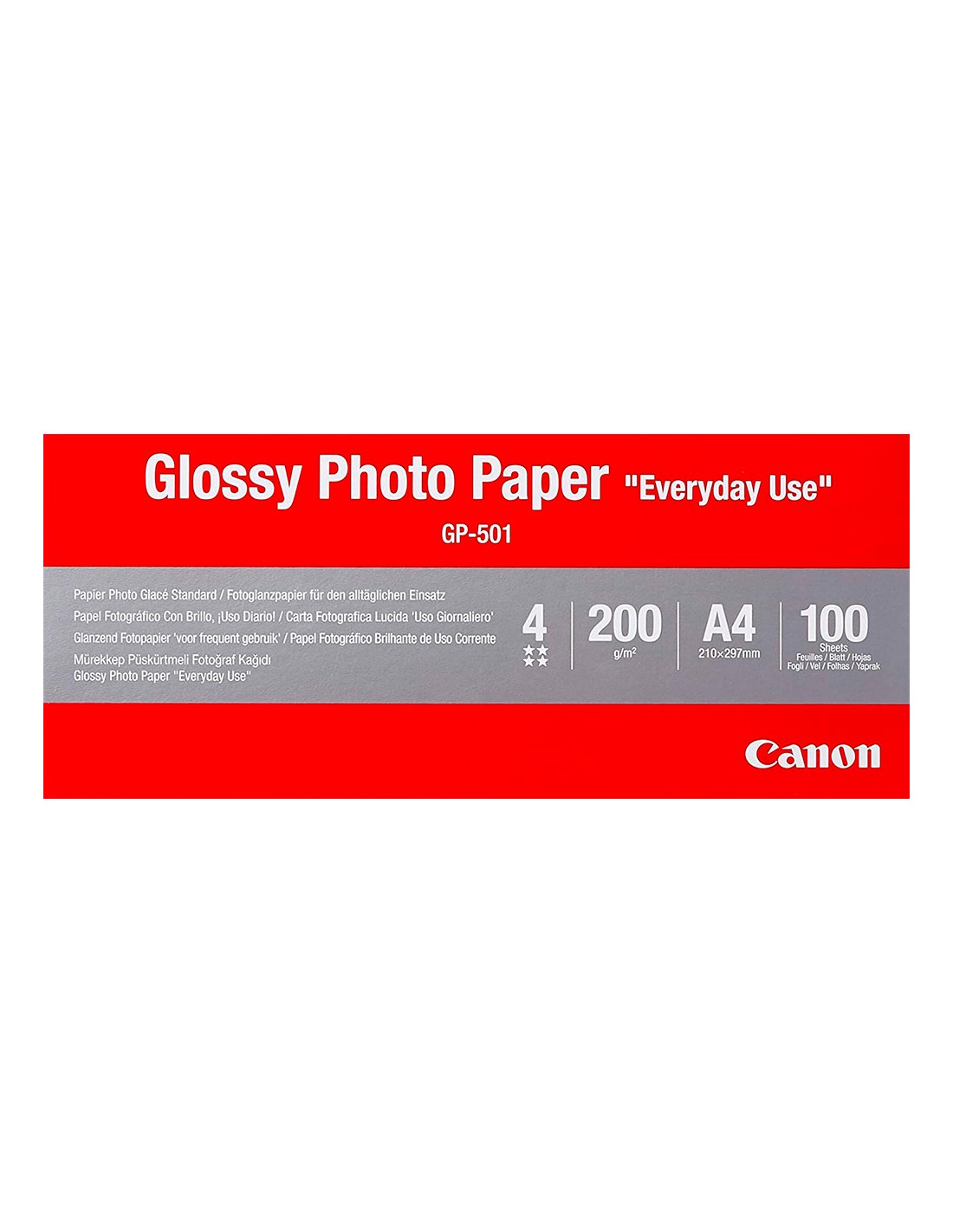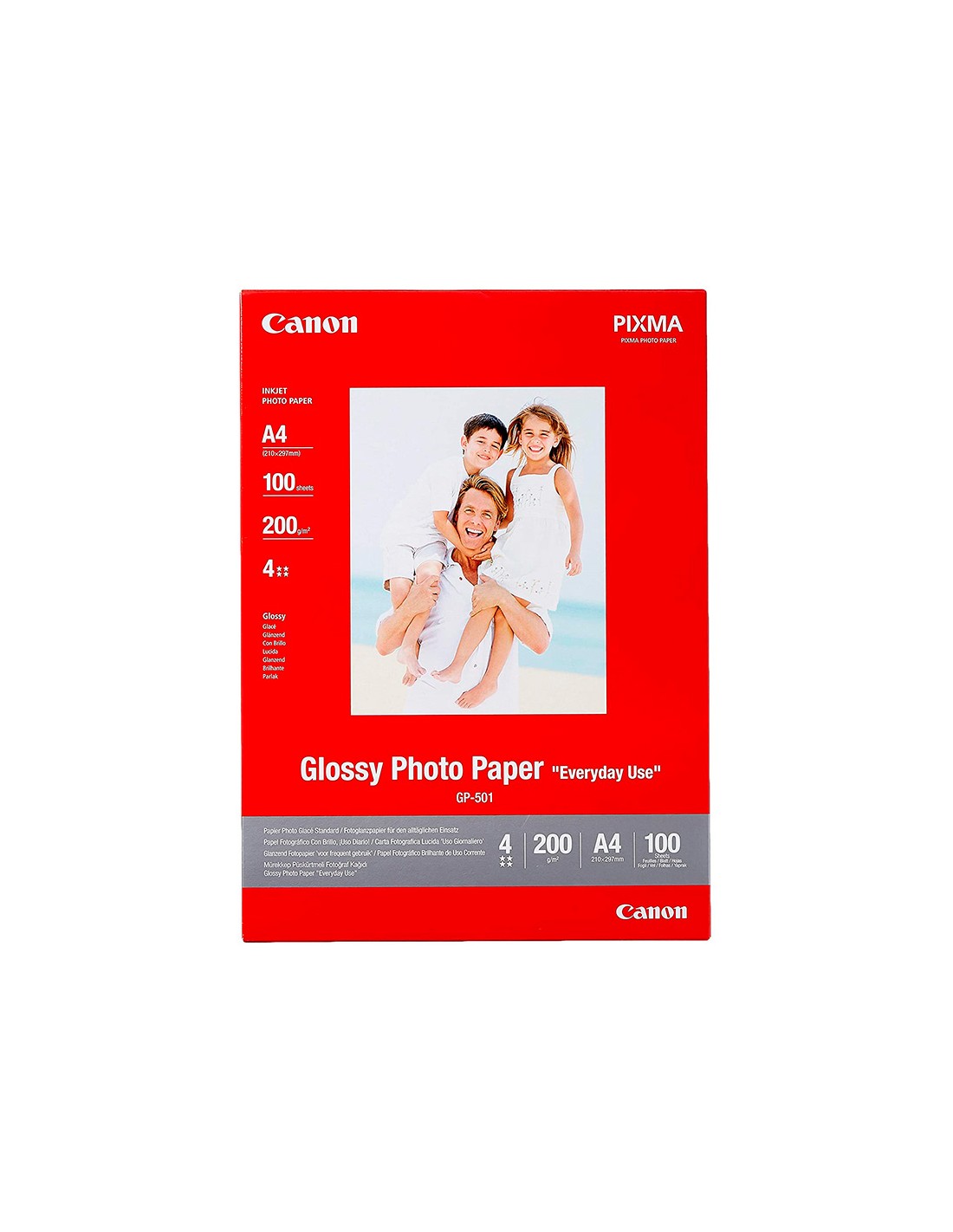 Papel fotográfico acabado brillante. Formato A4. Gramaje 200 g/m². Paquete de 100 hojas.