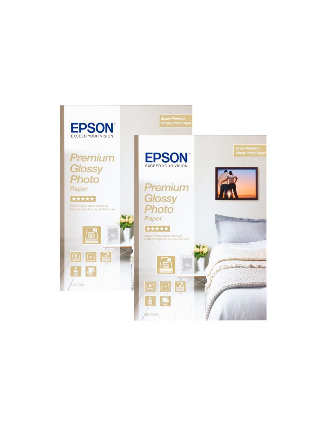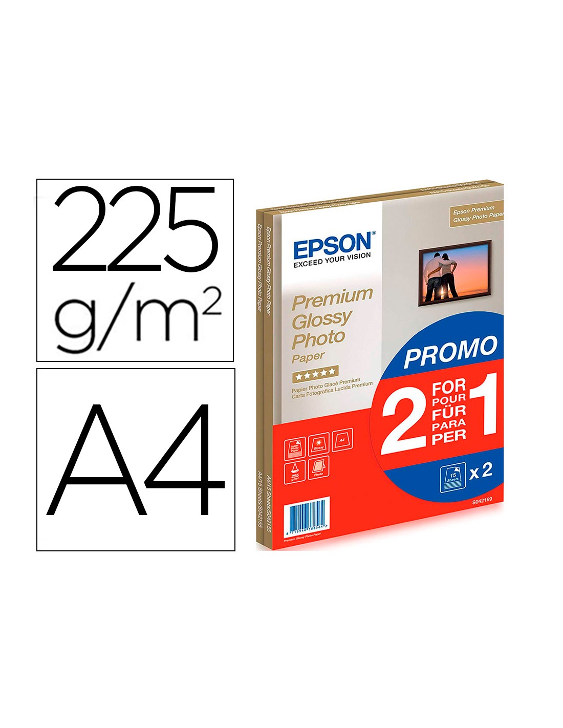 Papel fotografico epson premiun glossy photo satinado din a4 promo 2 x 15 hojas 225 gr