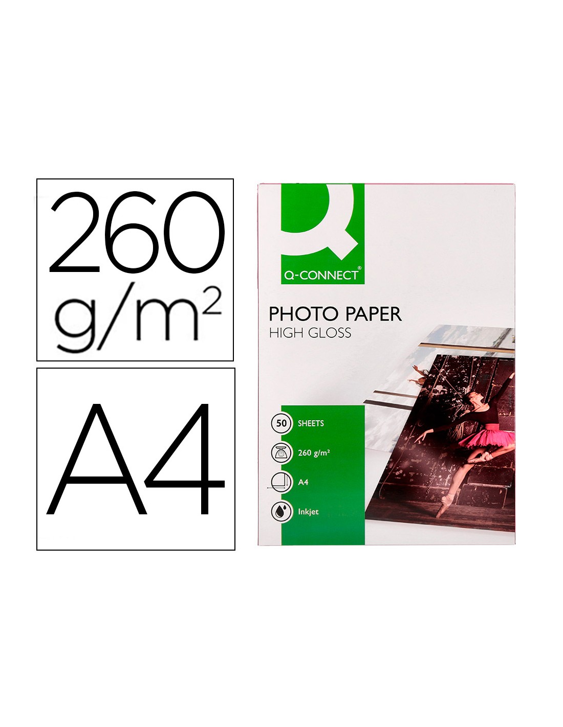 Papel q-connect foto glossy din a4 alta calidad digital photo para ink-jet bolsa de 50 hojas de 260 gr