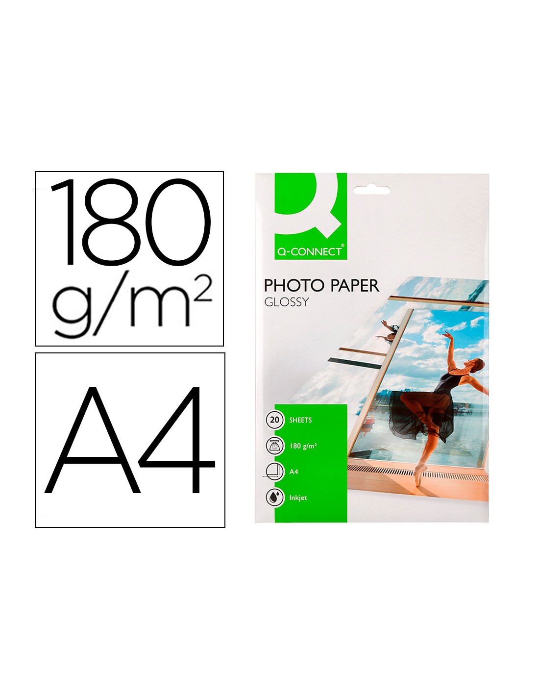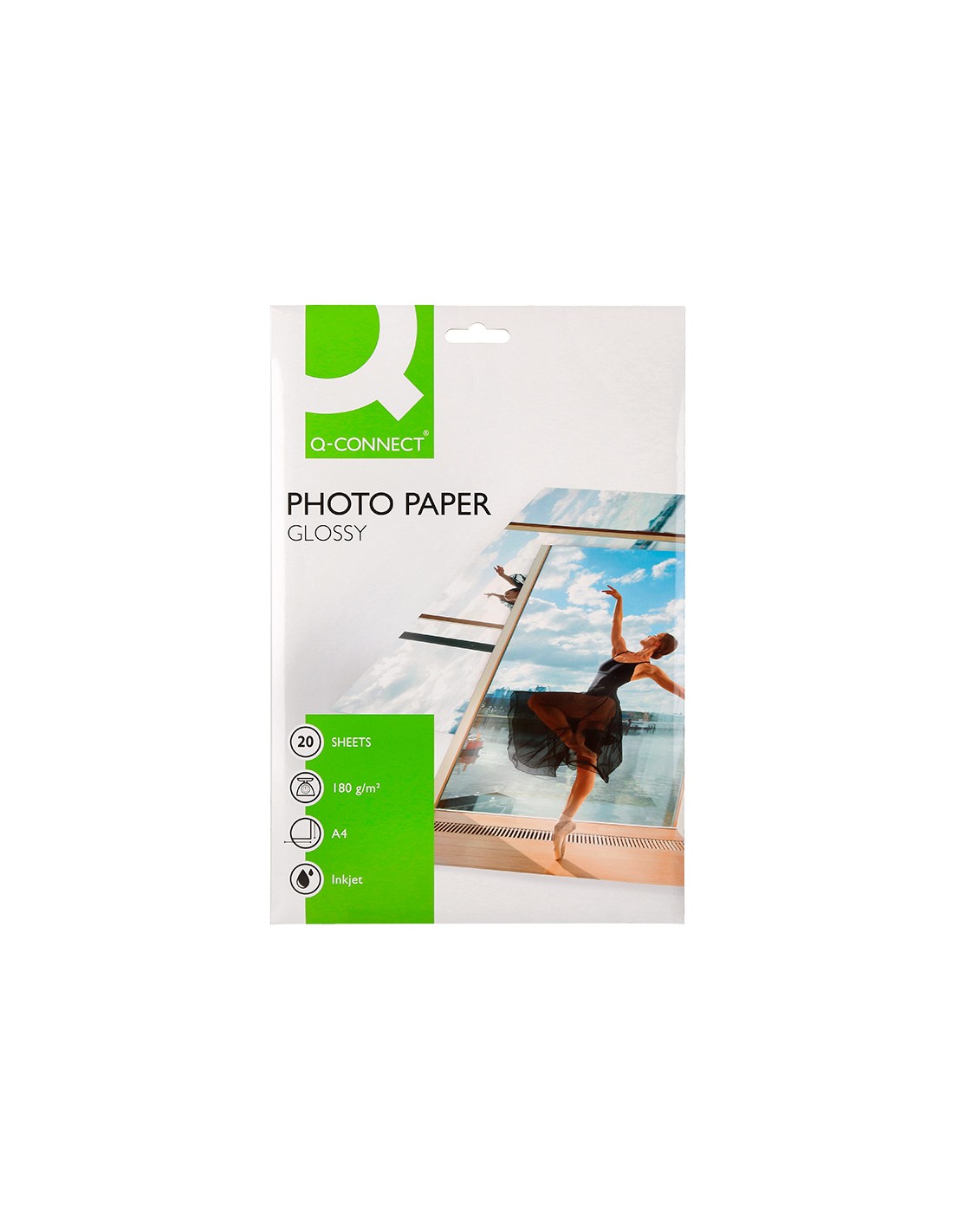 Papel q-connect foto glossy kf01103 din a4 digital photo para ink-jet bolsa de 20 hojas de 180 gr