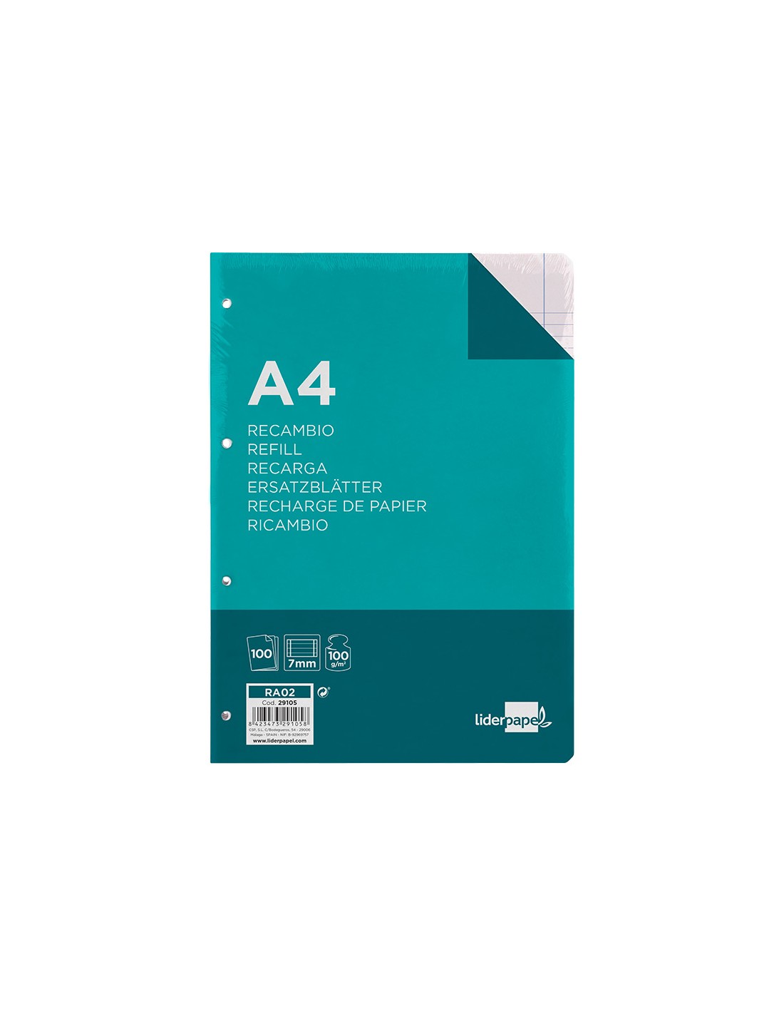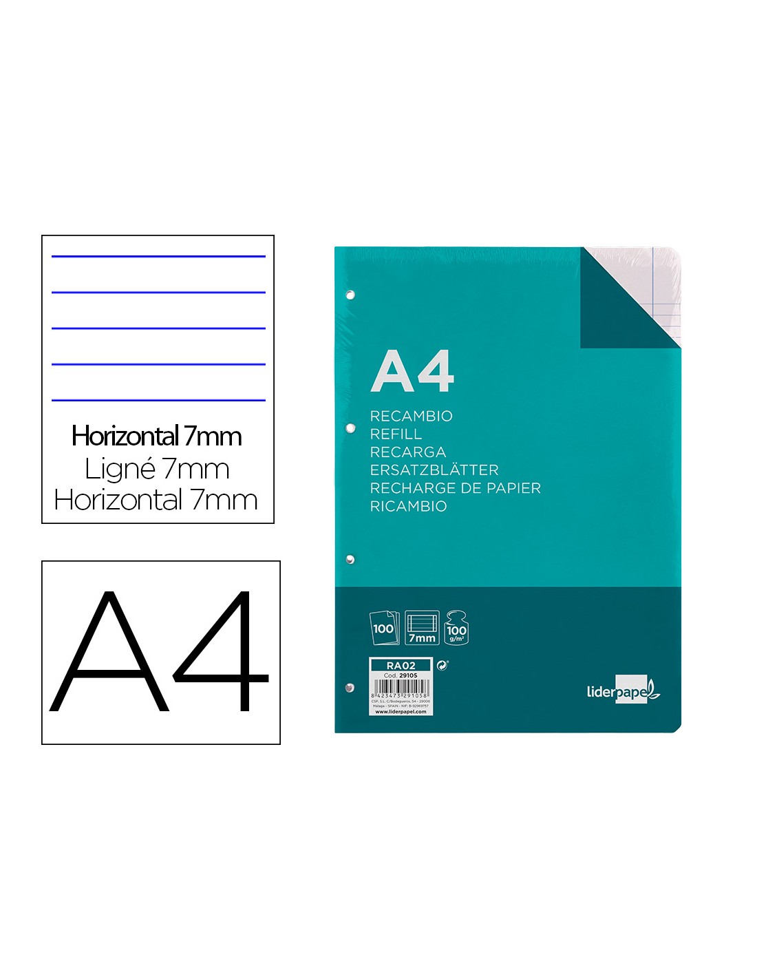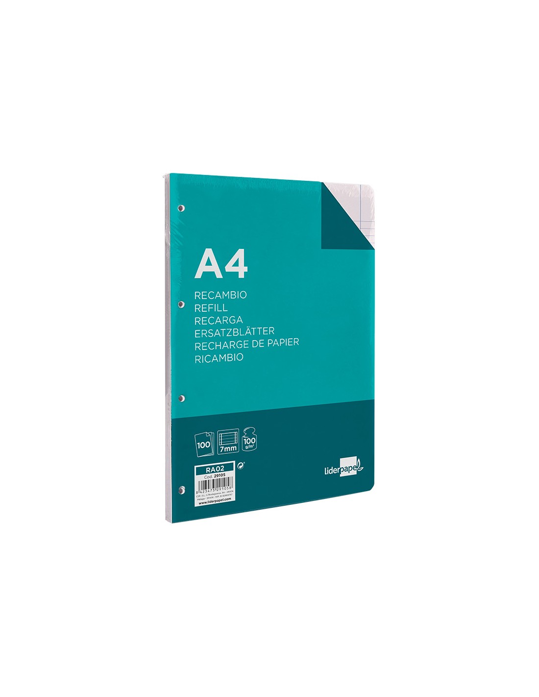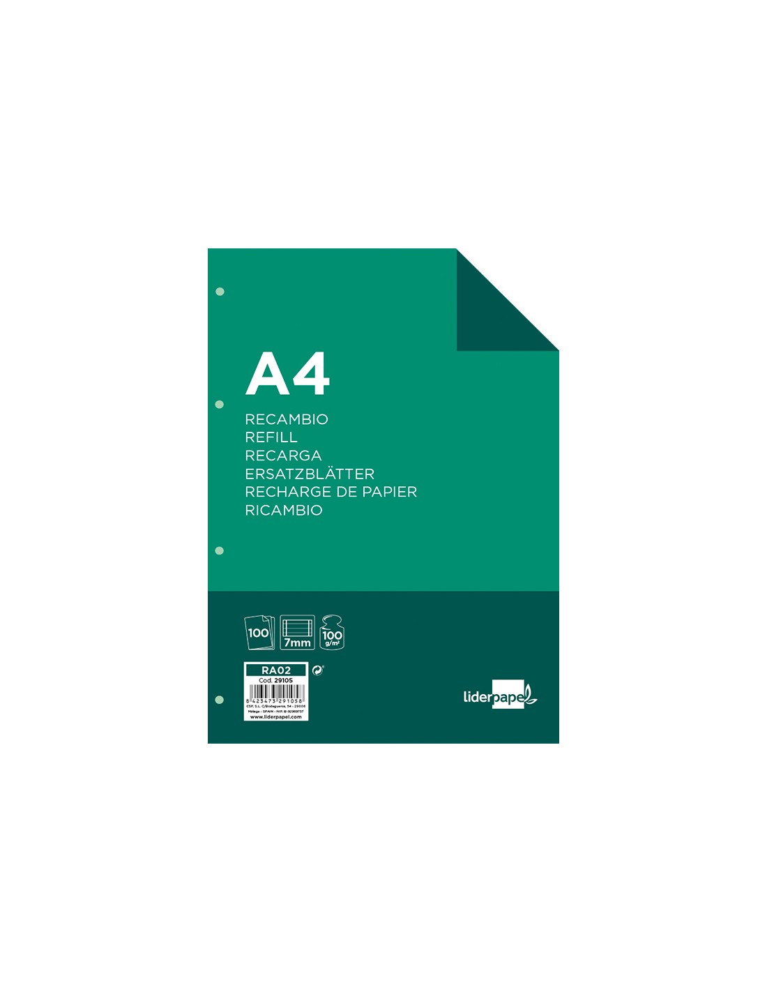 LIDERPAPELRecambio liderpapel a4 100 hojas 100g/m2 horizontal con doble margen 4 taladros