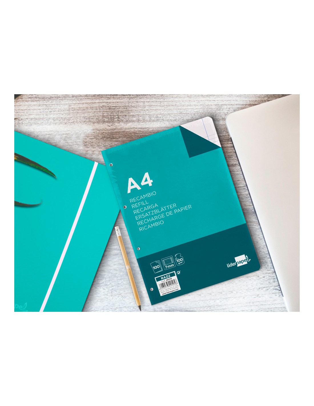 Recambio liderpapel a4 100 hojas 100g/m2 horizontal con doble margen 4 taladros