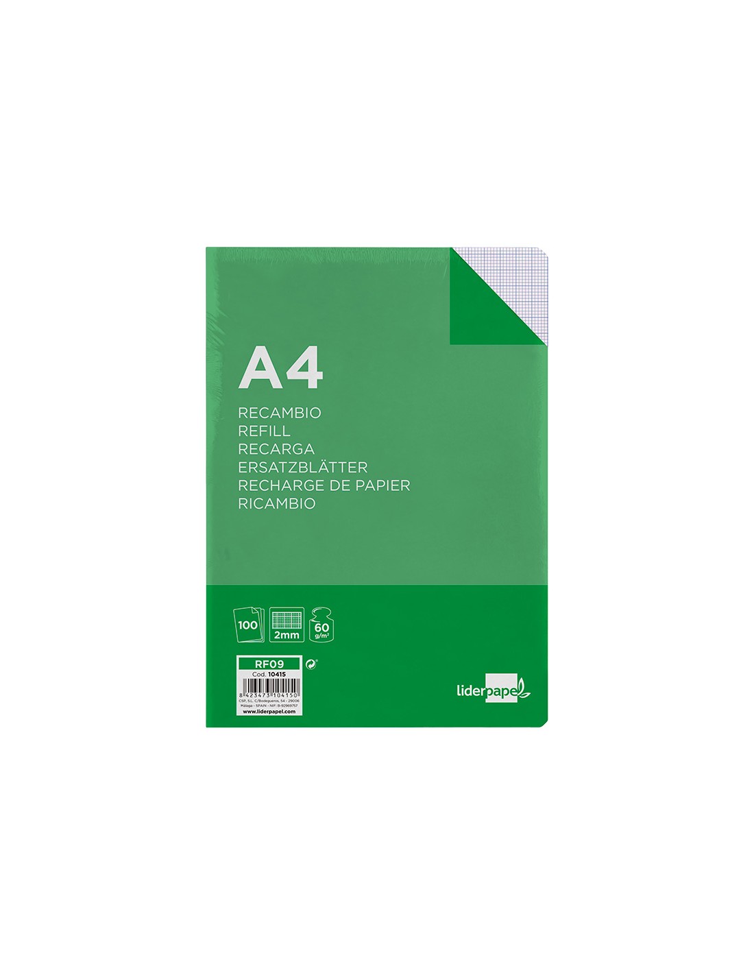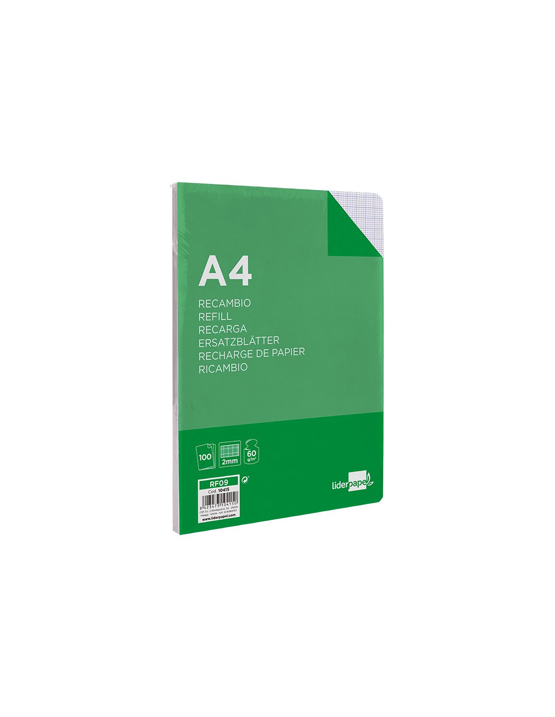 LIDERPAPELRecambio liderpapel a4 100 hojas 60g/m2 milimetrado sin margen 4 taladros