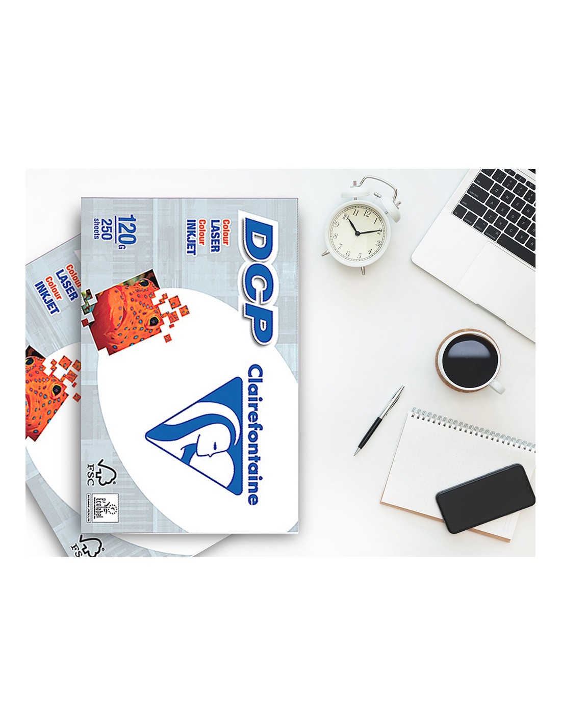 Intenso y luminoso, los colores impresos sobre DCP se hacen vivos. La blancura pura del papel DCP respeta los colores más sutiles y los contrastes más refinados. Su textura uniforme permite una impresión perfecta y su lisura asegura una imagen aguda y brillante. Su específico tratamiento no abrasivo protege las impresoras del desgaste prematuro. Este papel también da resultados excelentes con impresoras en color de chorro de tinta (ink-jet).