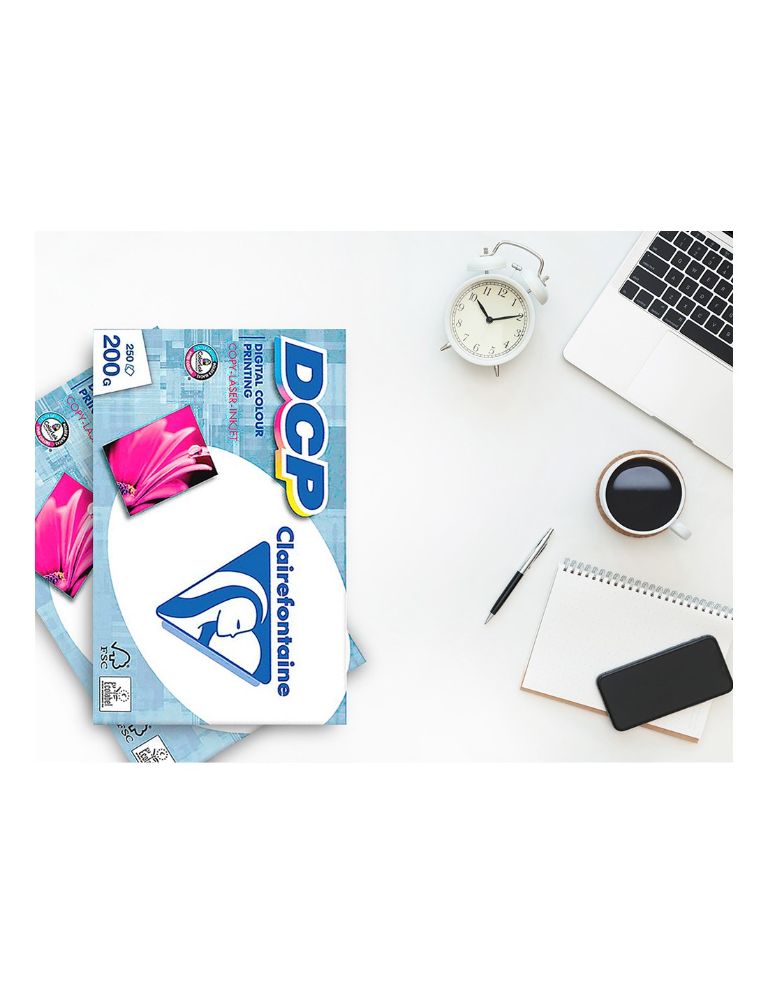 Intenso y luminoso, los colores impresos sobre DCP se hacen vivos. La blancura pura del papel DCP respeta los colores más sutiles y los contrastes más refinados. Su textura uniforme permite una impresión perfecta y su lisura asegura una imagen aguda y brillante. Su específico tratamiento no abrasivo protege las impresoras del desgaste prematuro. Este papel también da resultados excelentes con impresoras en color de chorro de tinta (ink-jet).