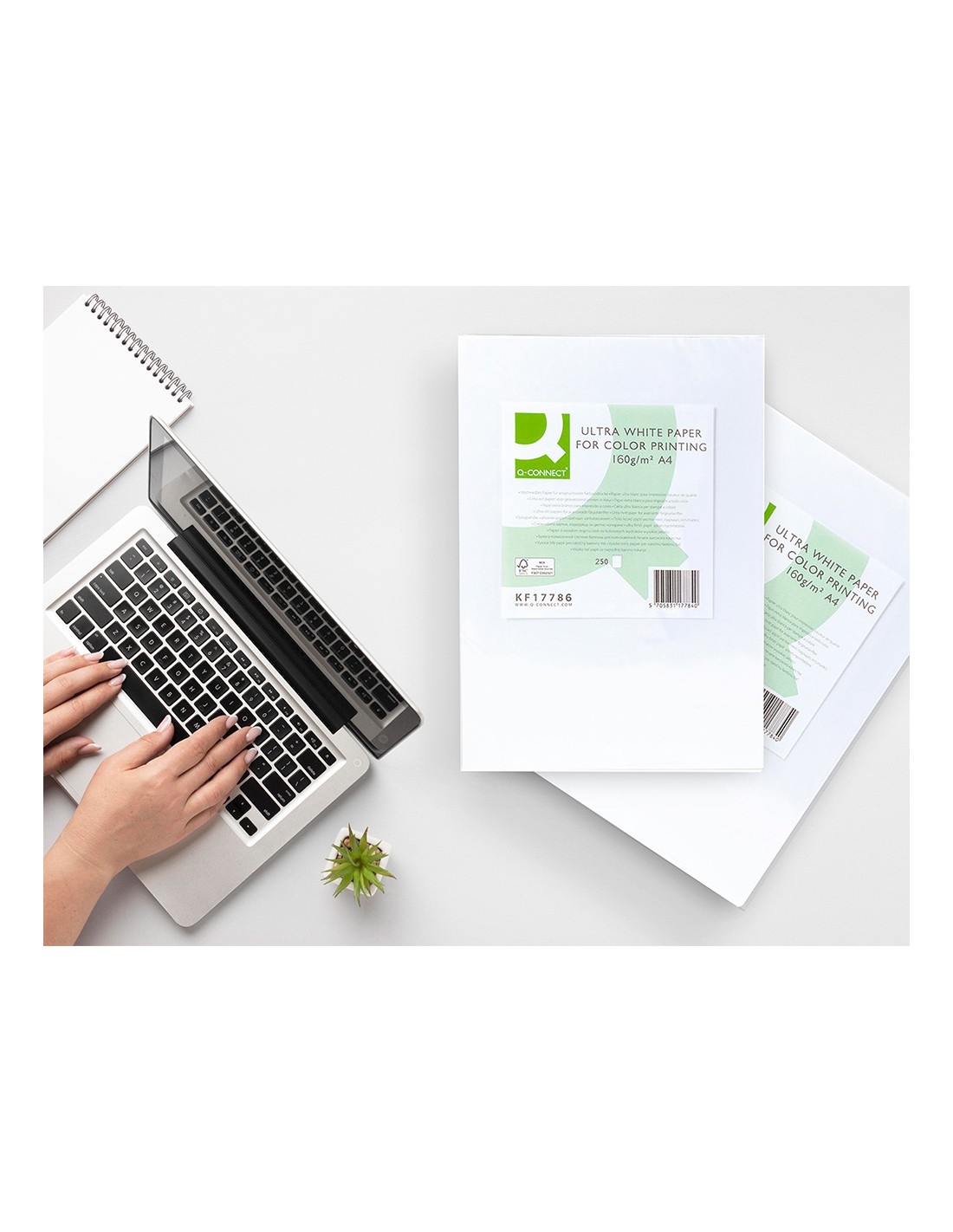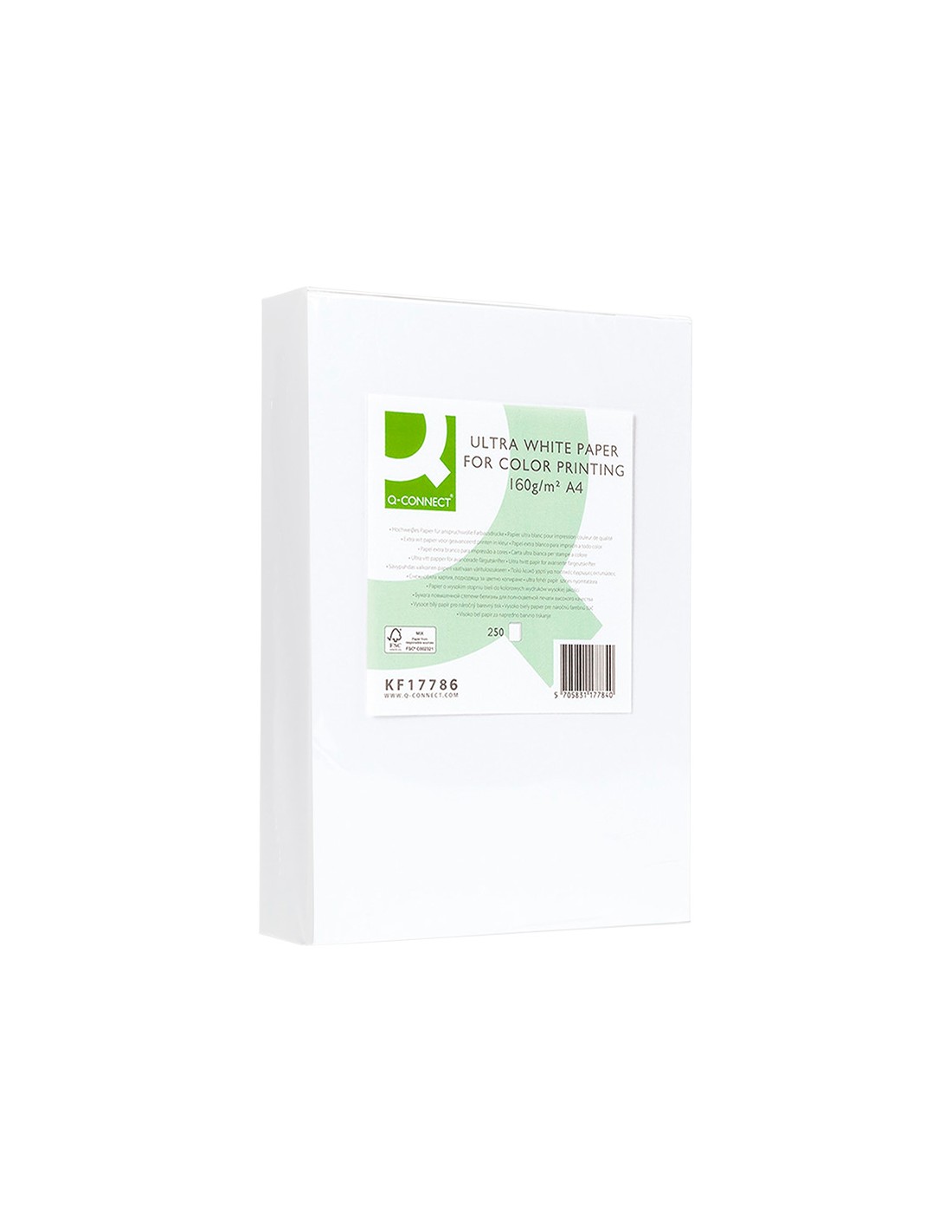 Papel fotocopiadora q-connect ultra white din a4 160 gramos paquete de 250 hojas