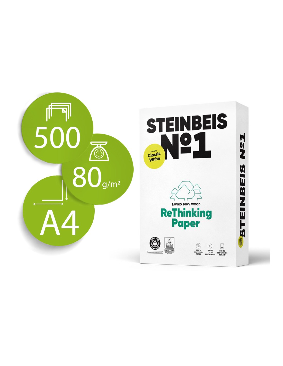 Papel fotocopiadora steinbeis n.1 100% reciclado din a4 80 gramos paquete de 500 hojas