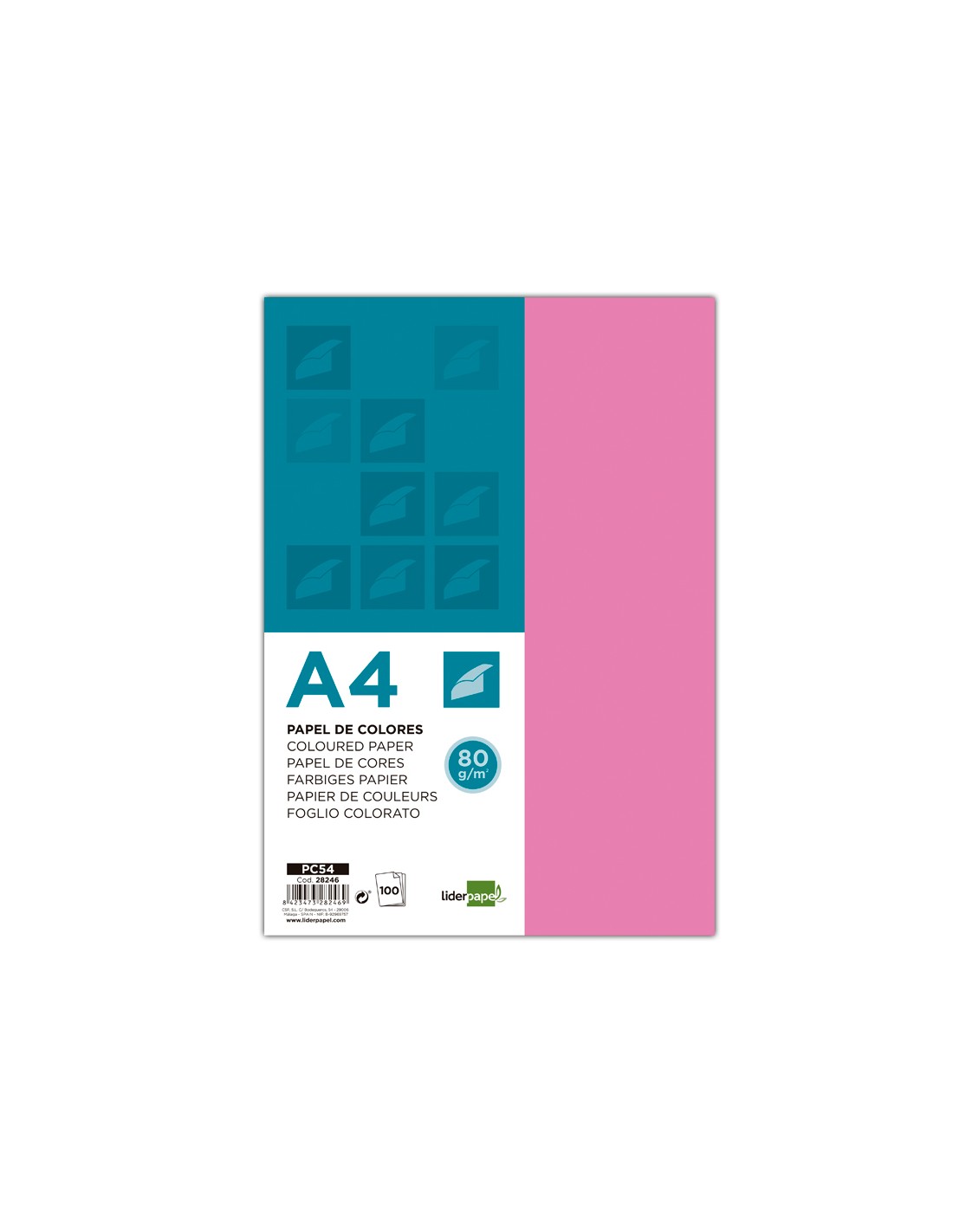 Papel color liderpapel a4 80gr rosa paquete de 100 hojas