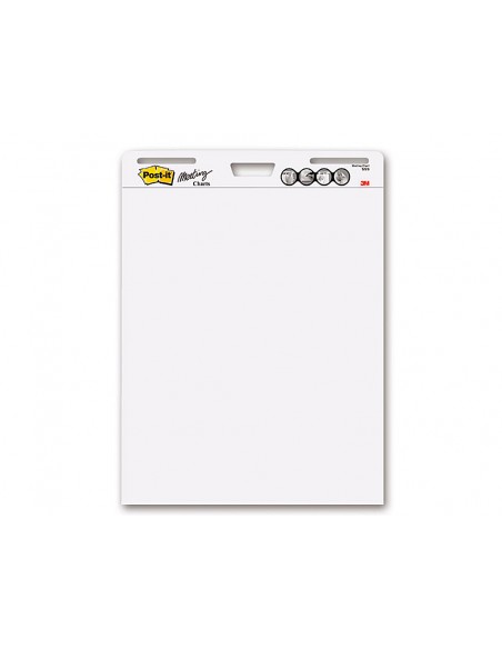 Bloc de reuniones para pizarras de caballete. Papel liso blanco 80 g/m² con parte adhesiva para arrancar del bloc y pegar en otra superficie. Como los Post-it® pero a mayor tamaño. Medidas 63,5 x 77,5 cm. 30 hojas/bloc.