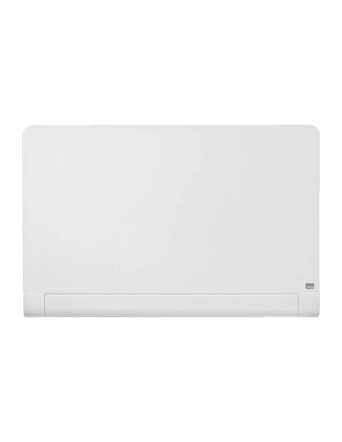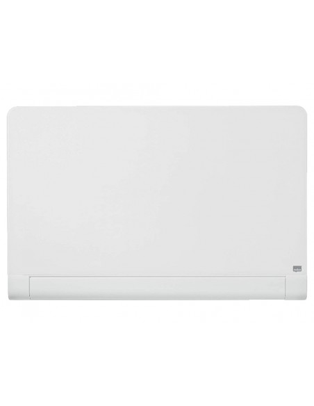 Pizarra Nobo Widescreen 45 cristal blanco redondeado. Superficie de cristal templado adecuada para un uso frecuente debido a su magnífica legibilidad y máxima resistencia a manchas de tinta, marcas de rotulador, arañazos y abolladuras. Tres veces más fácil de limpiar. Apariencia elegante y moderna con esquinas redondeadas, soportes de sujeción invisibles y una discreta bandeja de larga longitud para rotuladores. Garantía de por vida. Con rotulador y juego de imanes extra fuertes para pizarras de cristal incluidos.