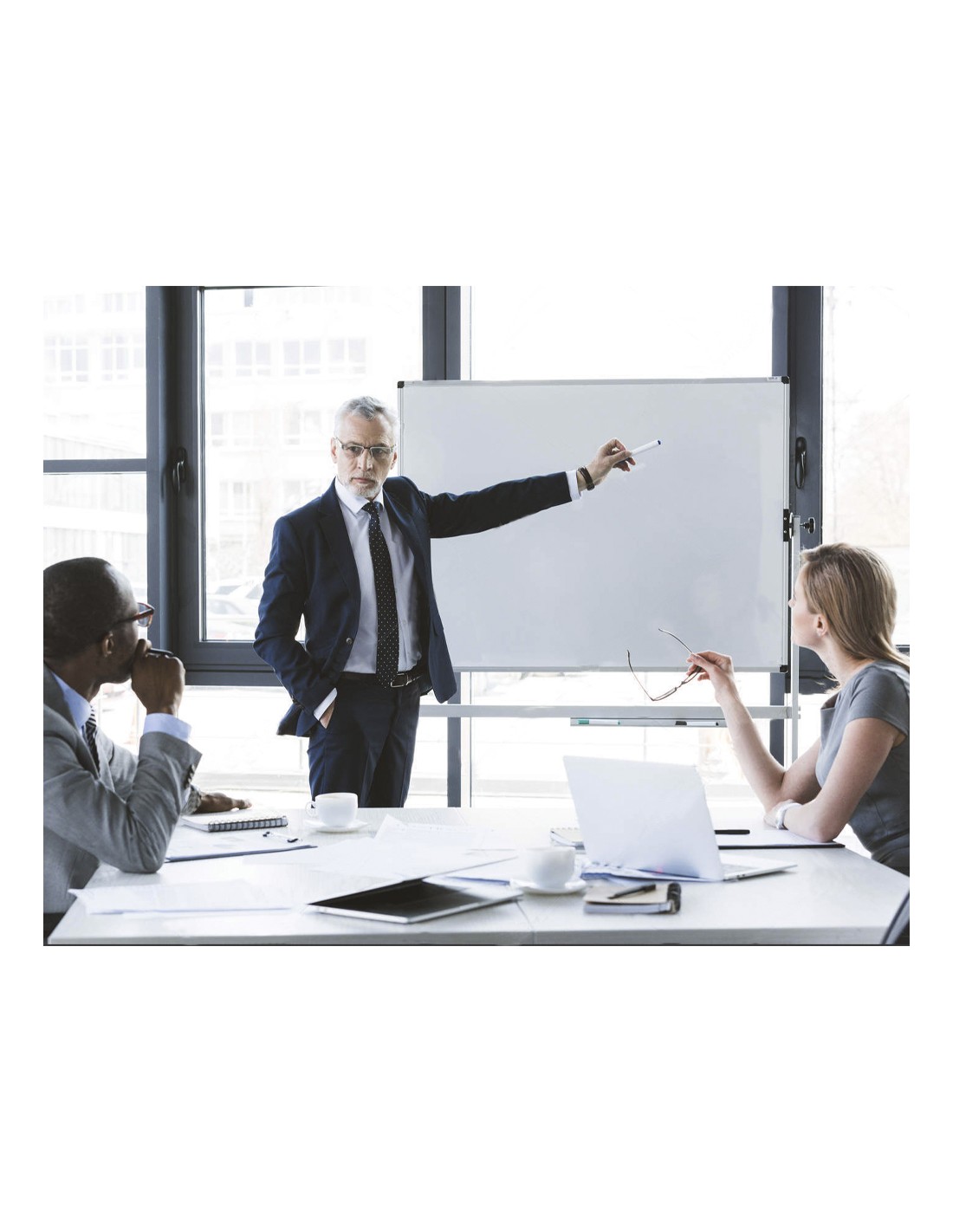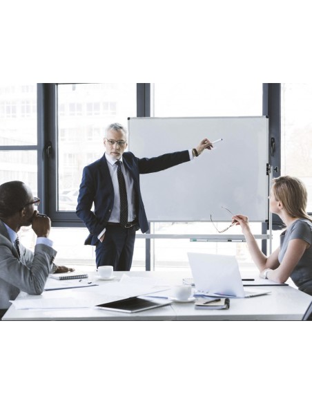 Pizarra blanca q-connect doble cara melamina marco de aluminio 120x90 cm giratoria