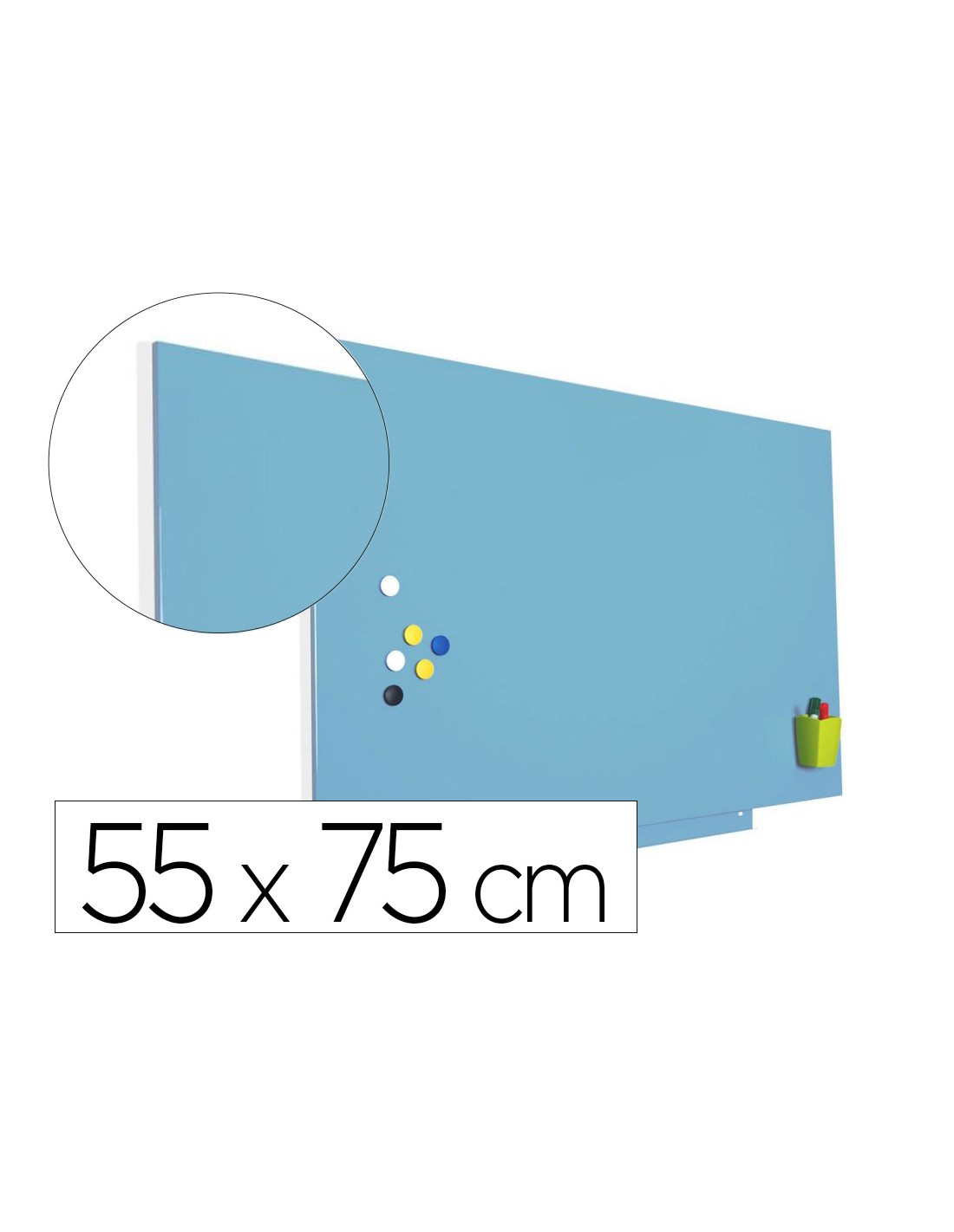 Pizarra modular y multifuncional, que gracias a su diseño moderno sin marco y con fijación magnética, permite colocarlas en vertical y horizontal haciendo posibles infinitas composiciones, desde una unidad hasta cubrir unapared, creciendo según sus necesidades. Además, sus acabados y complement os aumentan su funcionalidad con múltiples usos. Ordena las tareas por colores, personaliza los departamentos de tu empresa, mejora la visualizaciónde la información, etc. Los diferentes acabados totalmente compatibles co n los rotuladores de borrado en seco combinan perfectamente con todo tipo de entornos y además darán un toque moderno y fresco a tu oficina. Medidas 55x75 cm. Color azul.