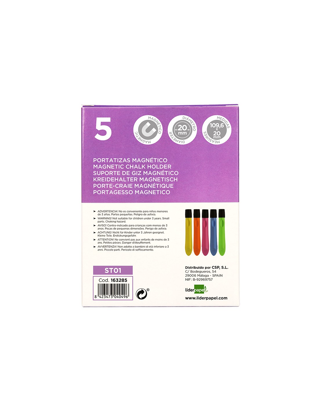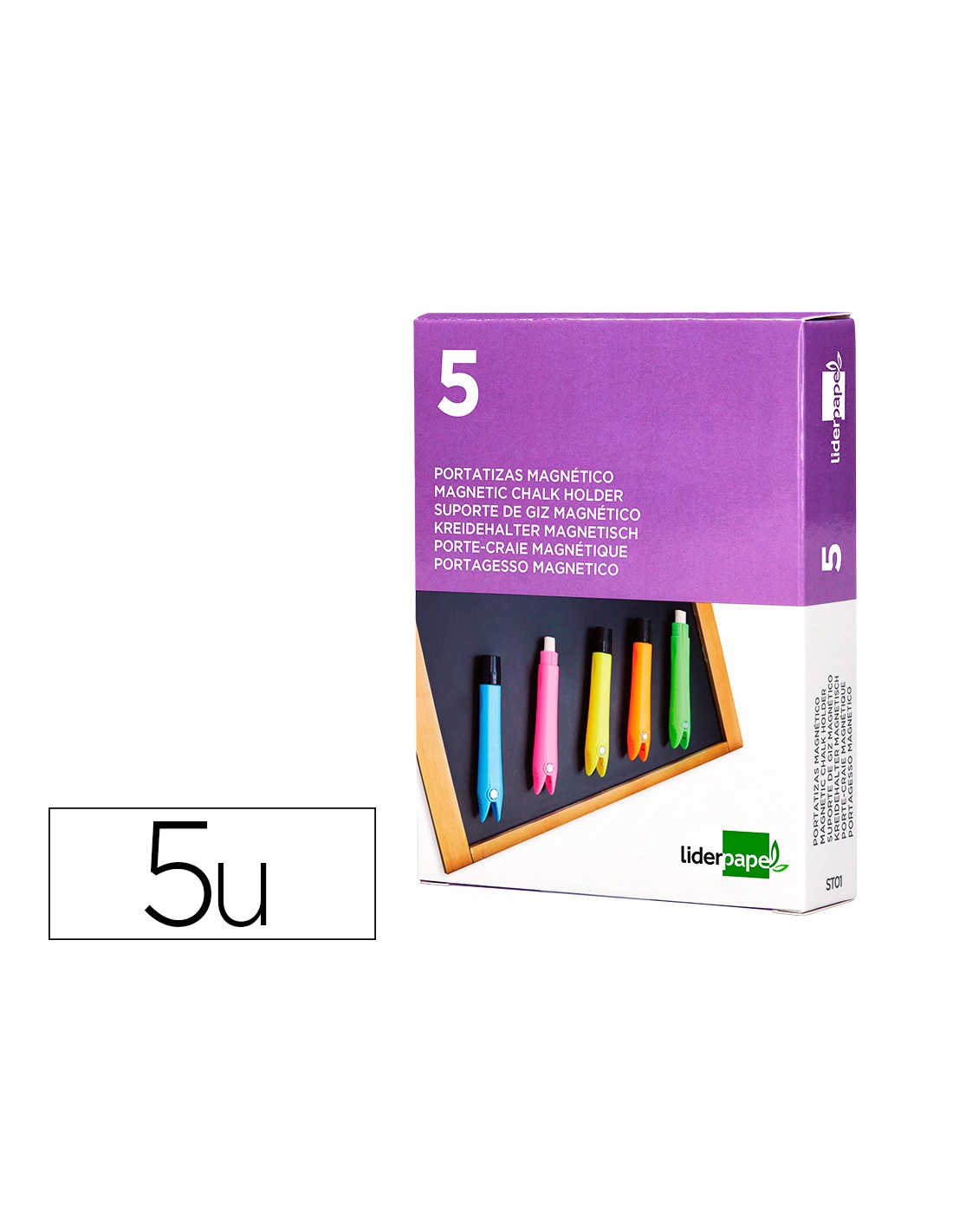 Portatizas plastico liderpapel magnetico colores surtidos caja de 5 unidades
