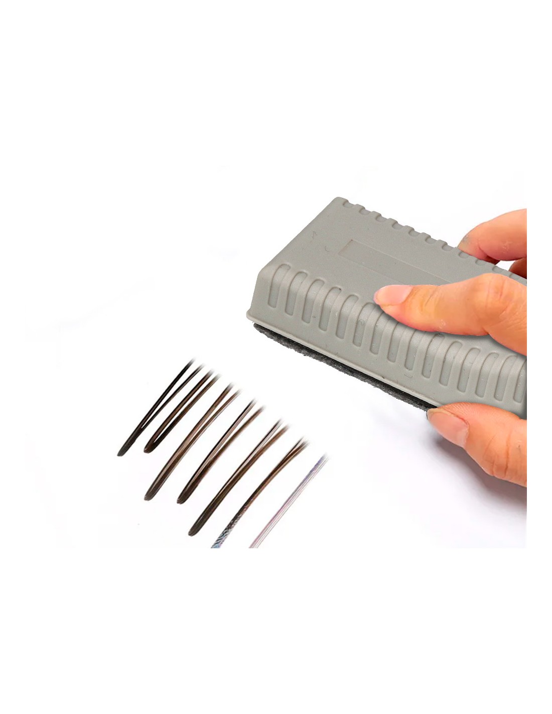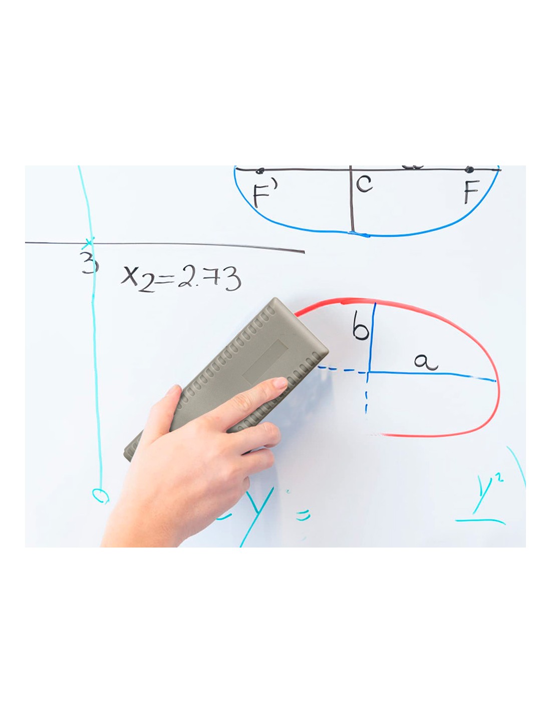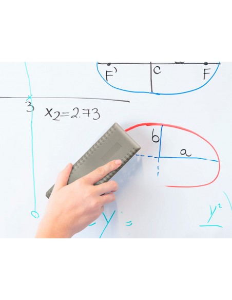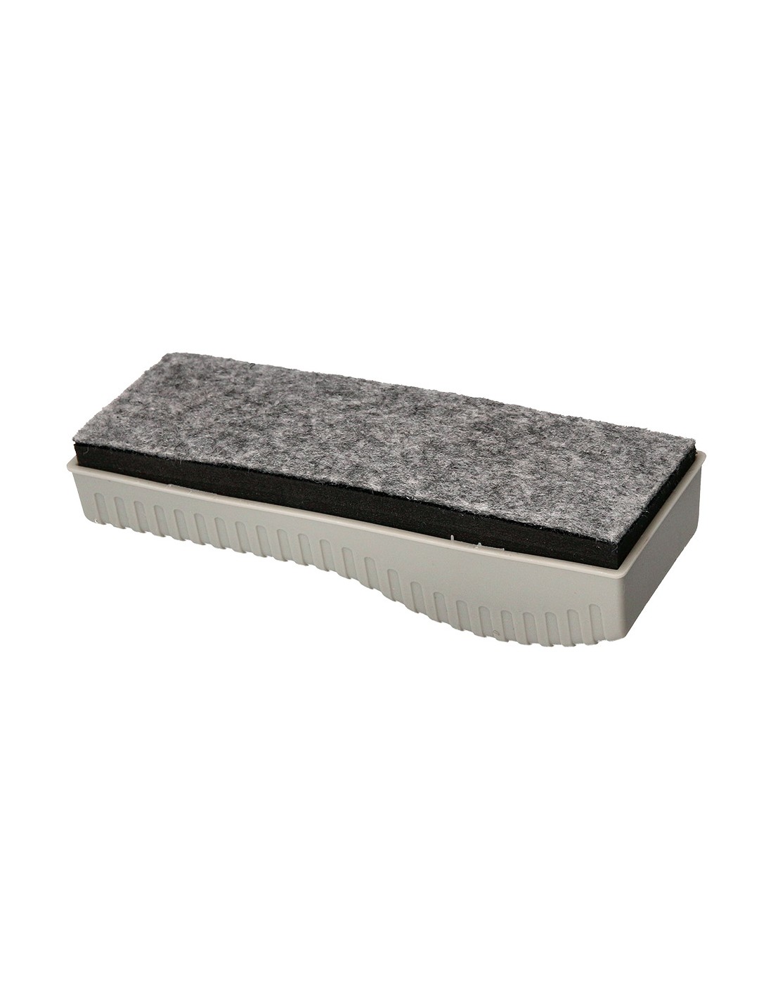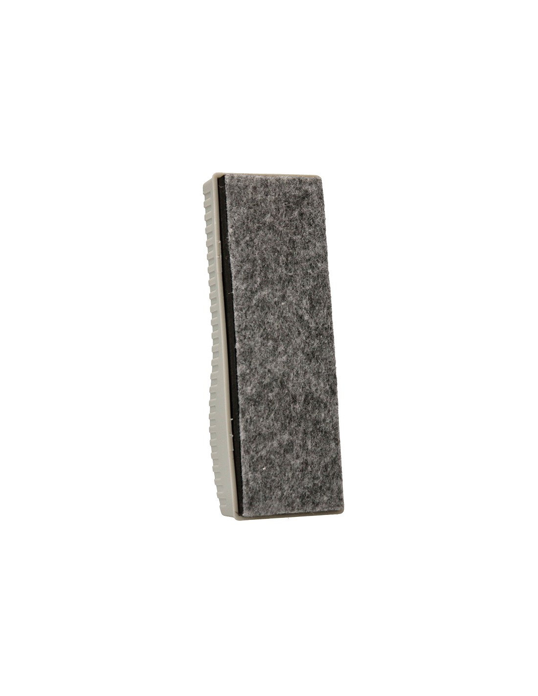 Borrador magnético para pizarras blancas. Empuñadura de plástico. Fieltro recambiable. Medidas 15 x 5,5 x 5 cm. Color gris.
