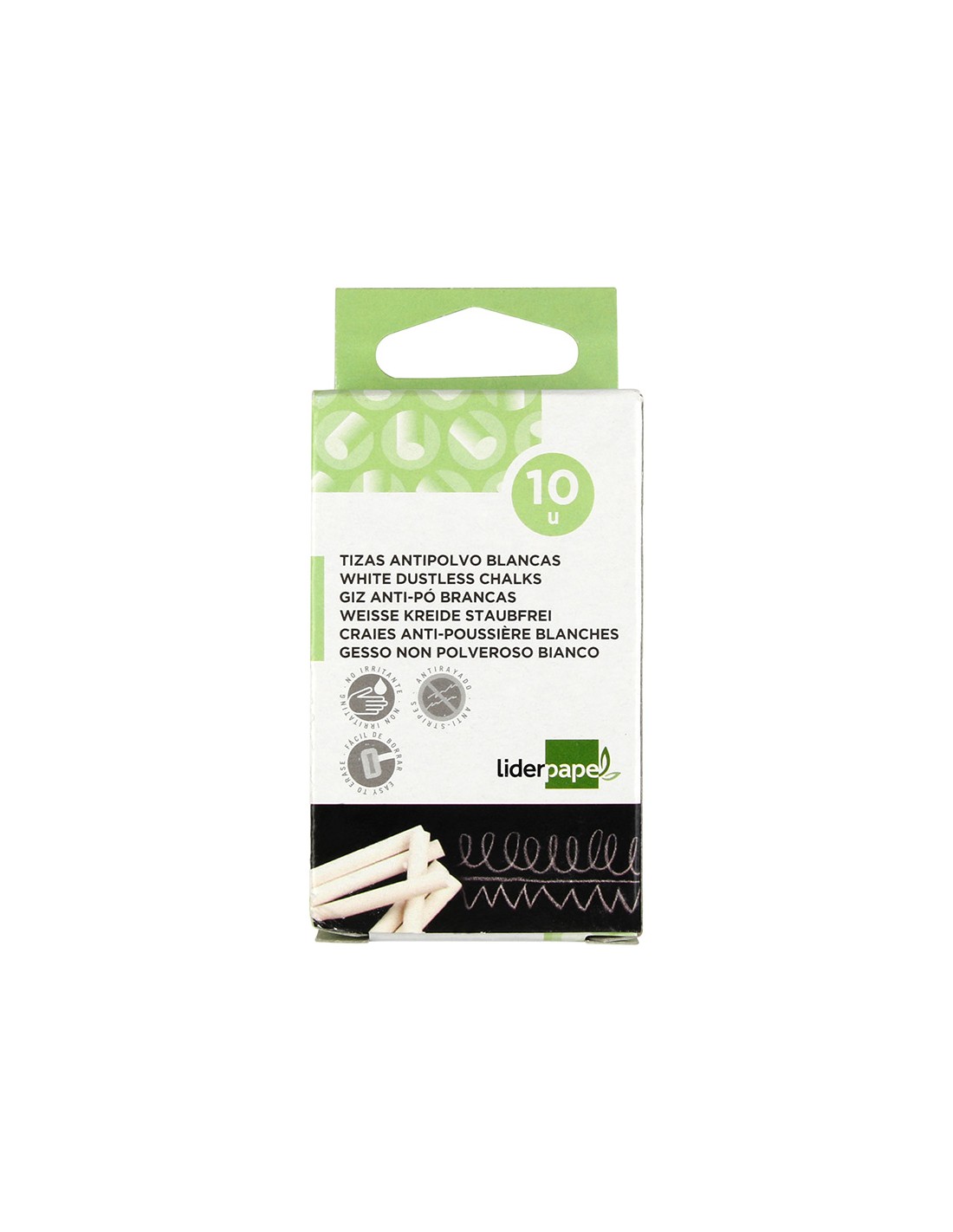 Tiza blanca antipolvo liderpapel caja de 10 unidades