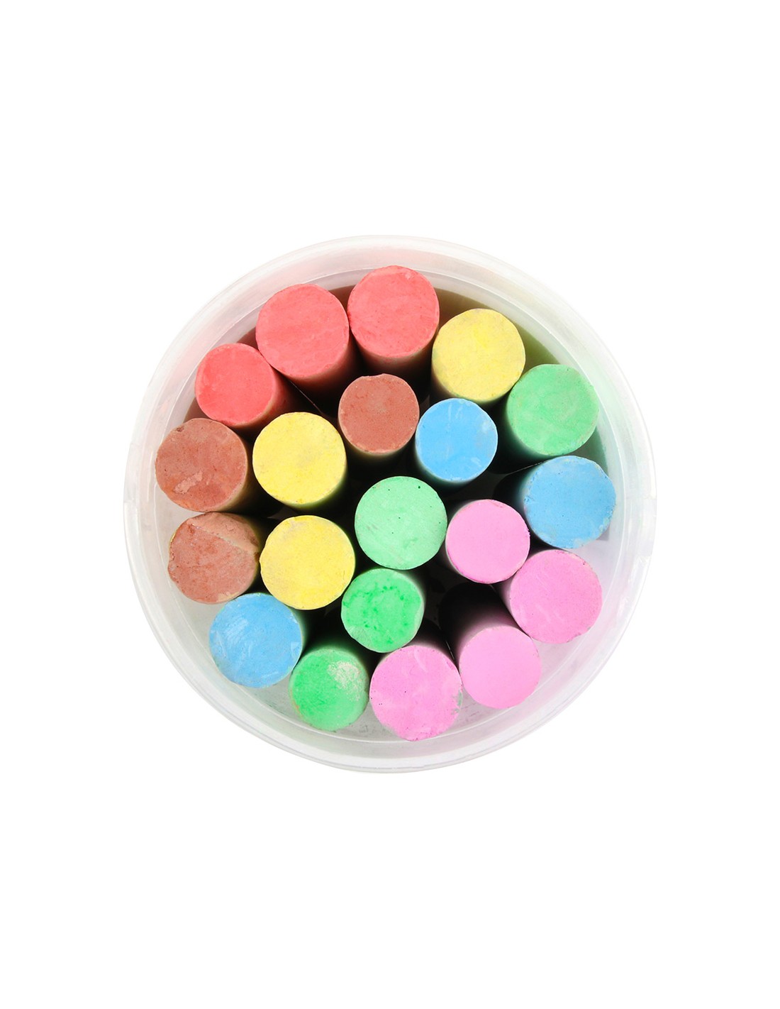 Tiza para suelo en diferentes colores. Ideal para actividades creativas y/o escolares. No recomendada para menores de 3 años. Cubilete de 20 unidades surtidas 3 tizas amarillas, 3 azules, 3 marrones, 3 naranjas, 4 rosas y 4 verdes.