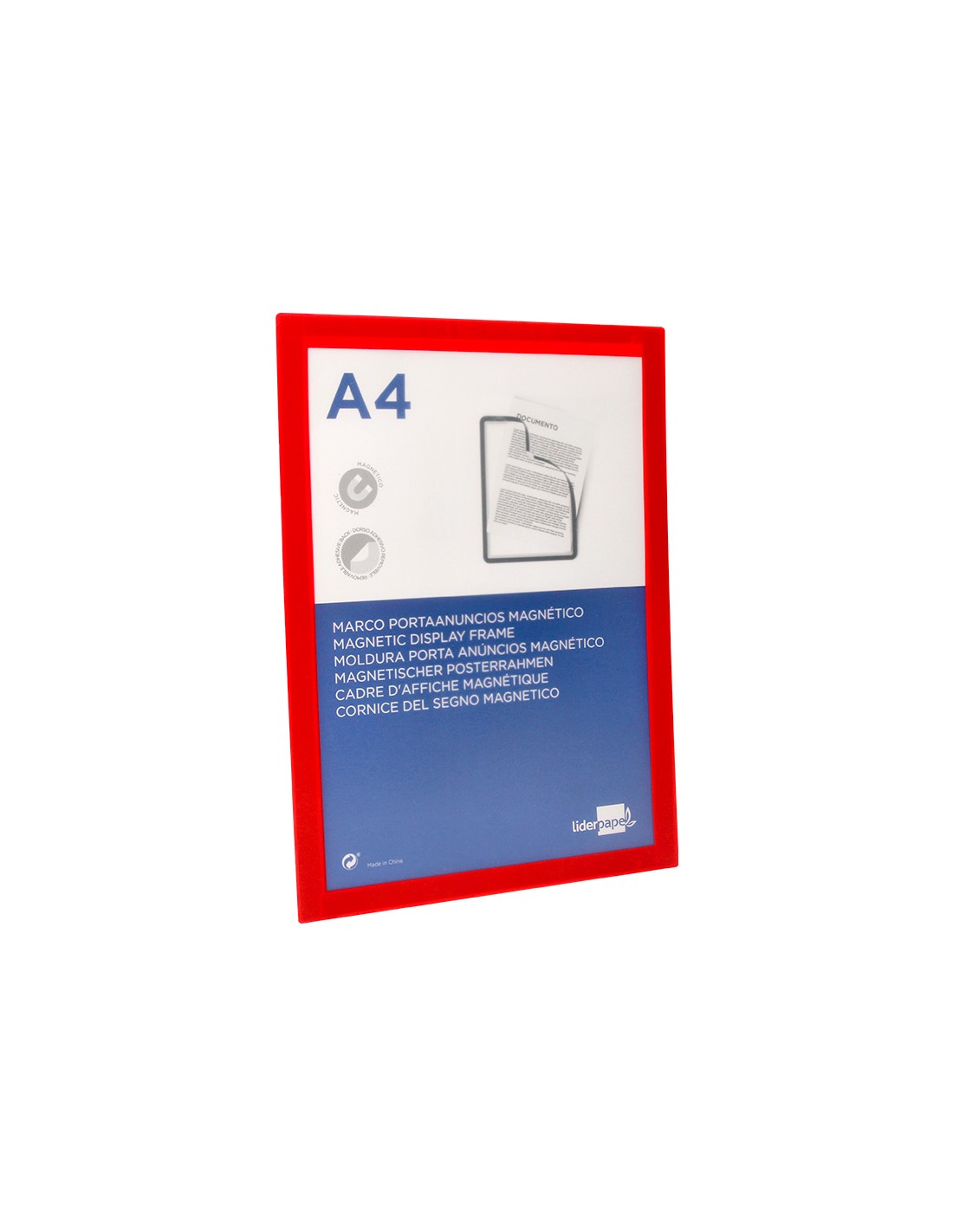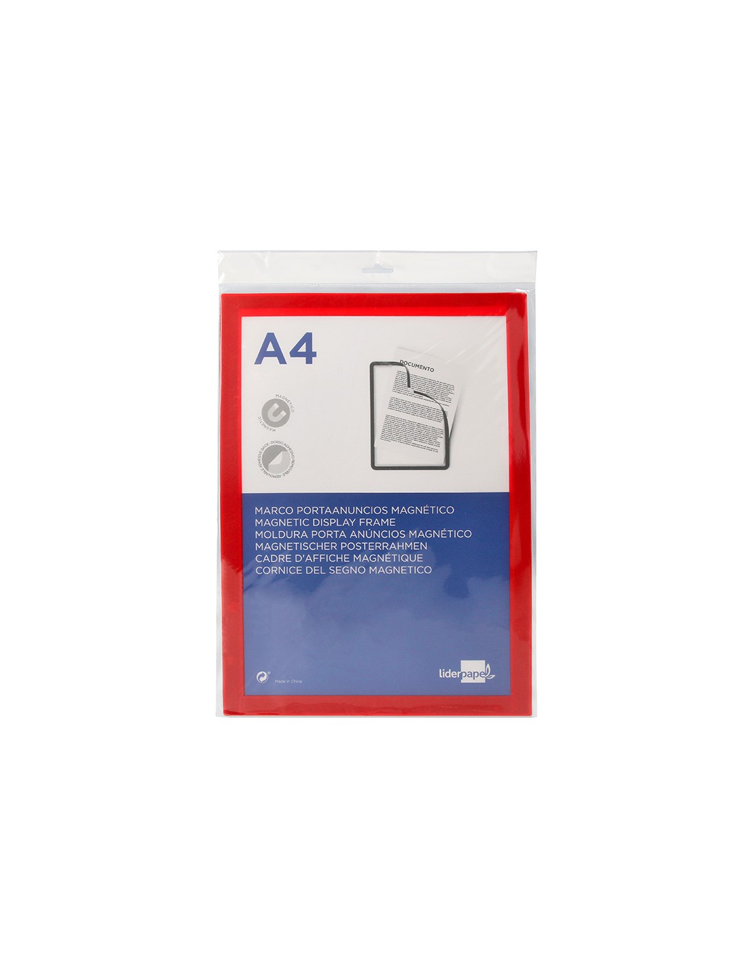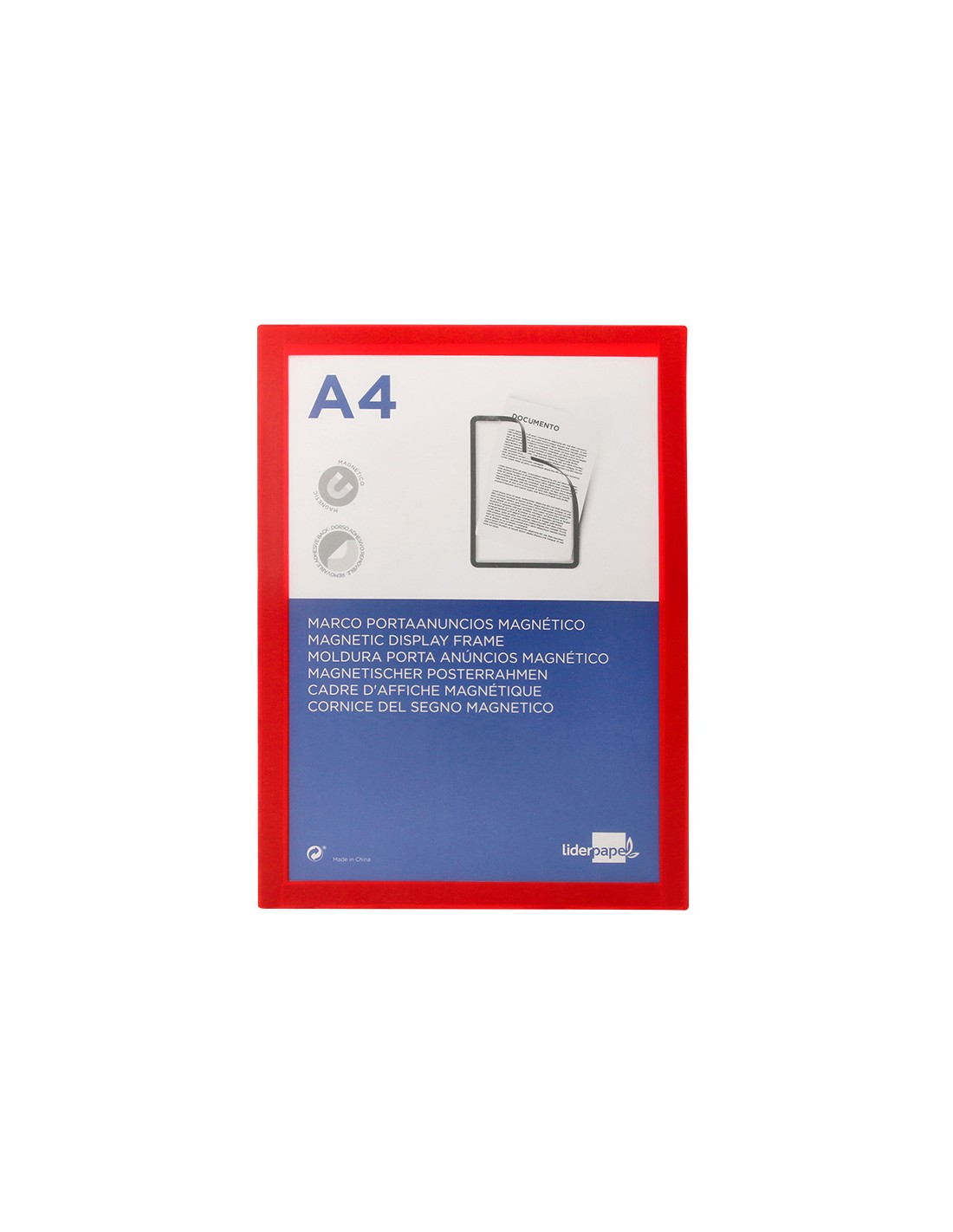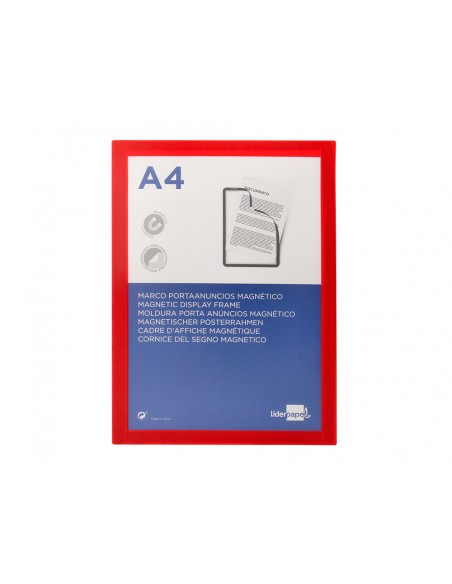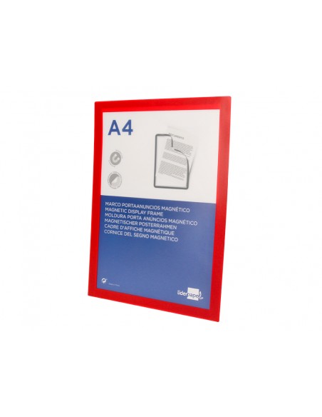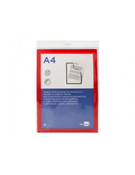 LIDERPAPELMarco porta anuncios liderpapel magnetico din a4 dorso adhesivo removible color rojo
