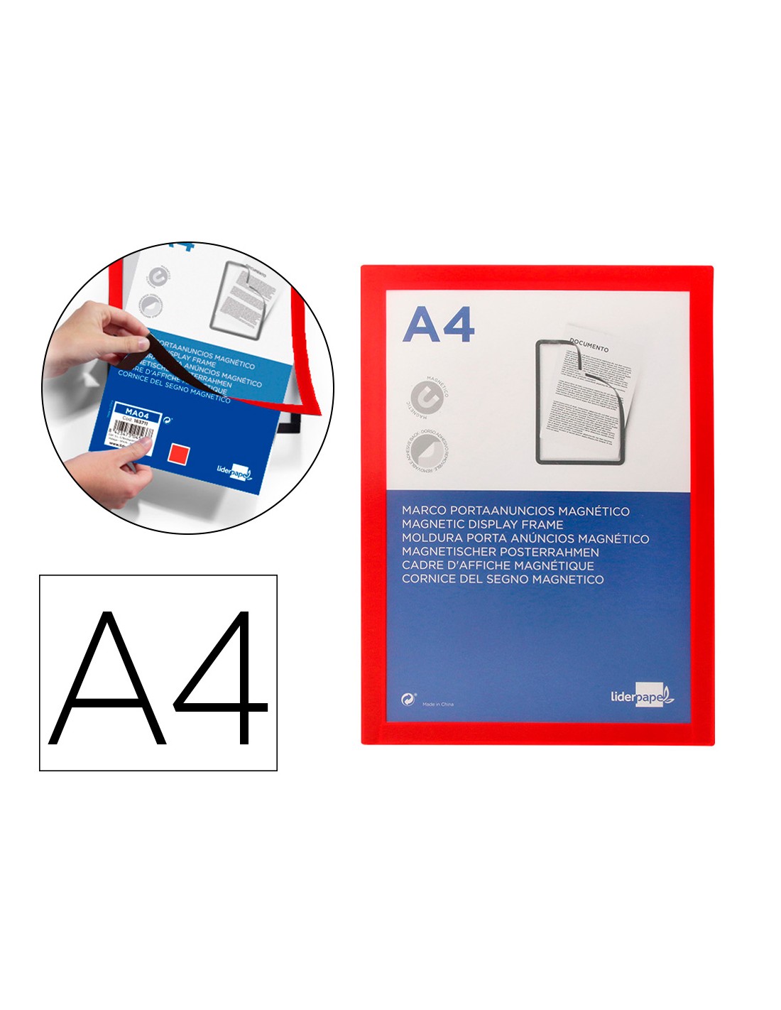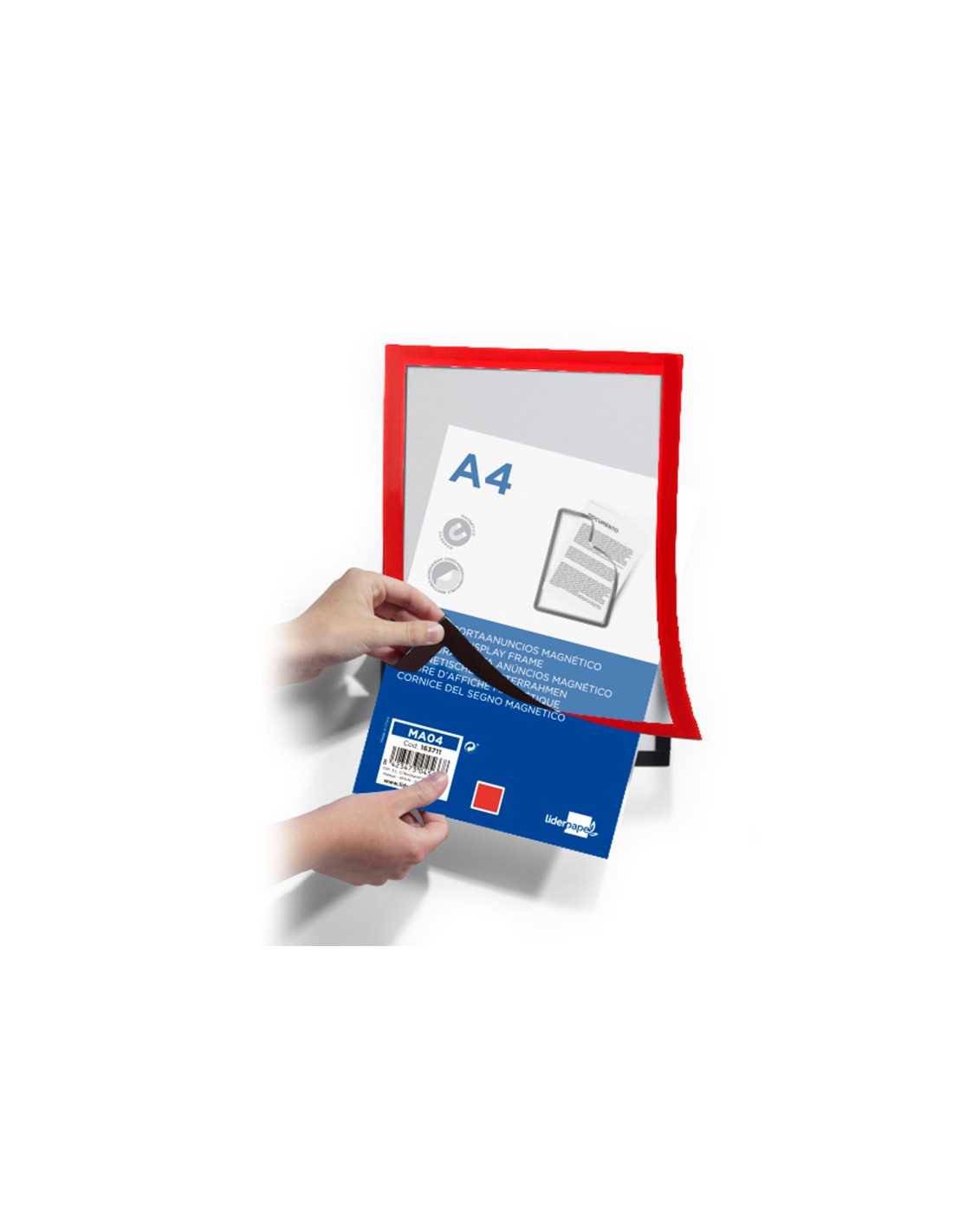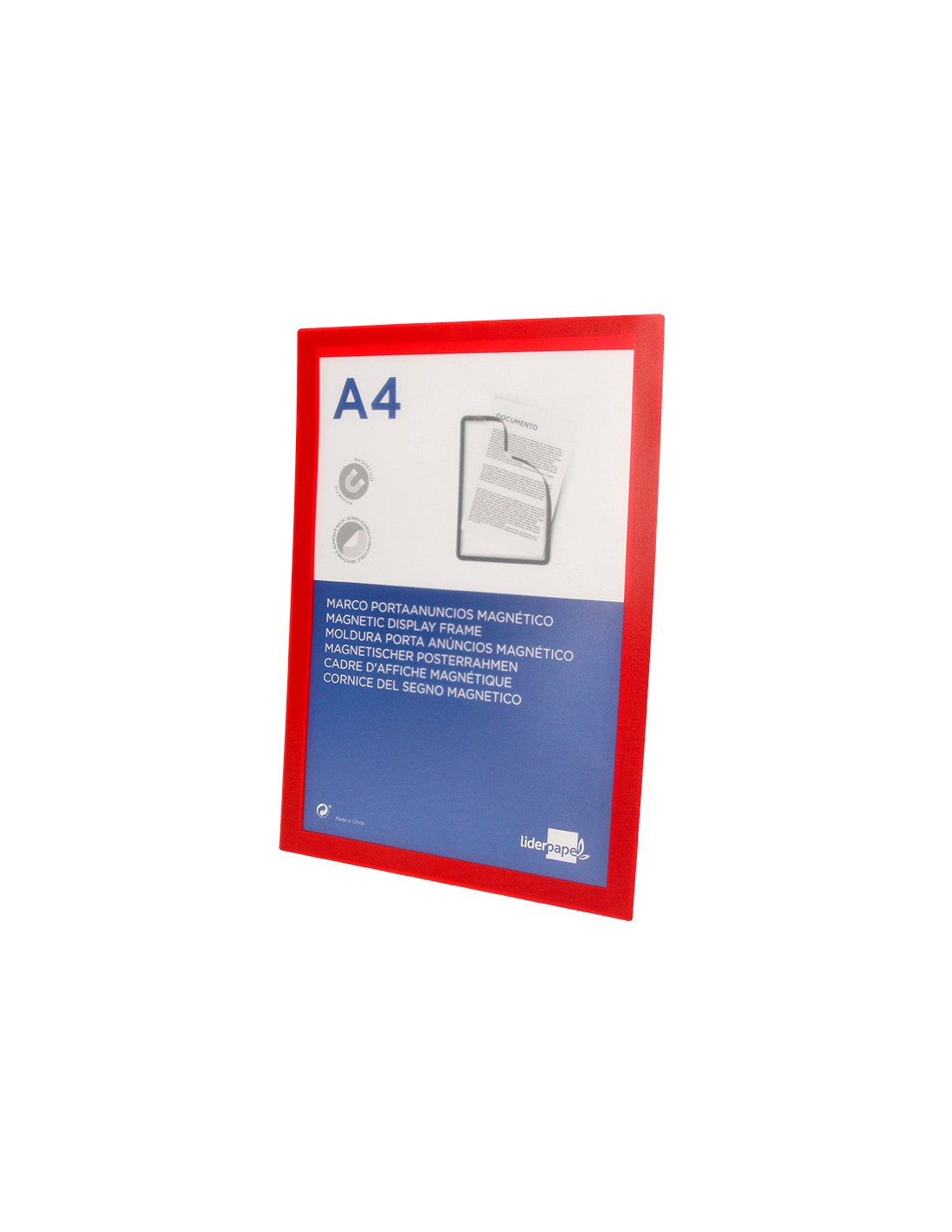 LIDERPAPELMarco porta anuncios liderpapel magnetico din a4 dorso adhesivo removible color rojo