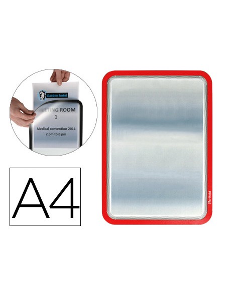 Marco porta anuncios tarifold magneto din a4 dorso adhesivo removible color rojo pack de 2 unidades