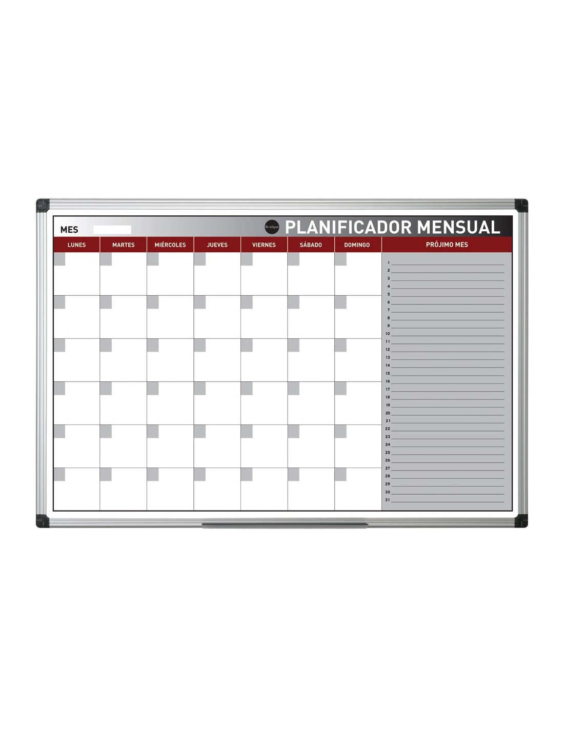 Planning magnetico bi-office mensual lacado marco aluminio rotulable 90x60 cm