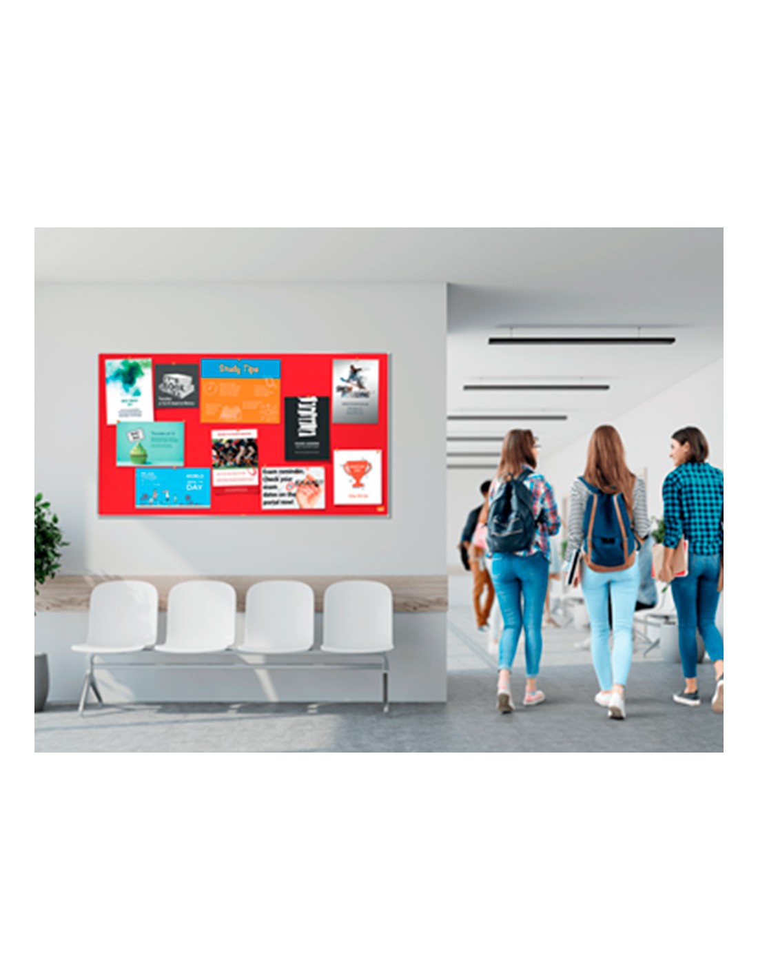 Tablero de anuncios de fieltro de formato panorámico con un marco contemporáneo fino y discreto que ofrece una superficie de visualización más accesible y extensa. El sistema InvisaMount facilita la instalación y los soportes de sujeción están cuidadosamente ocultos tras el tablero. Tablero de anuncios con una excelente superficie de fieltro para fijar y mostrar tus avisos. Medidas 1220x690mm.
