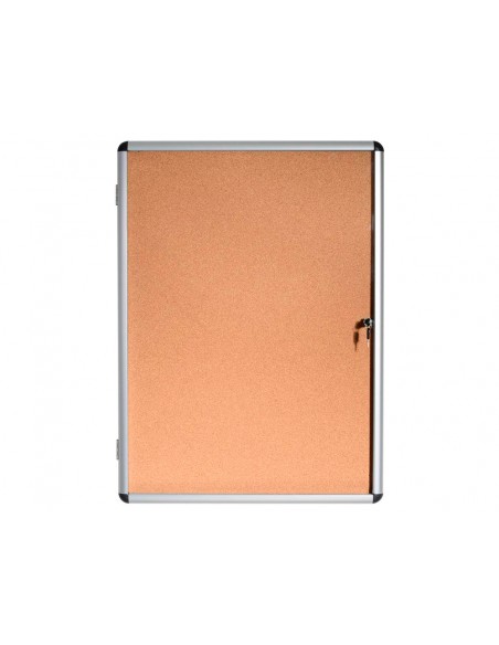 Vitrina de anuncios para interior ideal para colgar publicidad, avisos, pósteres, etc. Superficie de corcho y marco de aluminio. Cantoneras redondeadas. Cristal acrílico de gran visibilidad. Cerradura con 2 llaves incluidas. Capacidad para 11 documentos DIN A4. Fondo de 3,5 cm. Medidas 98,1 x 72 cm.