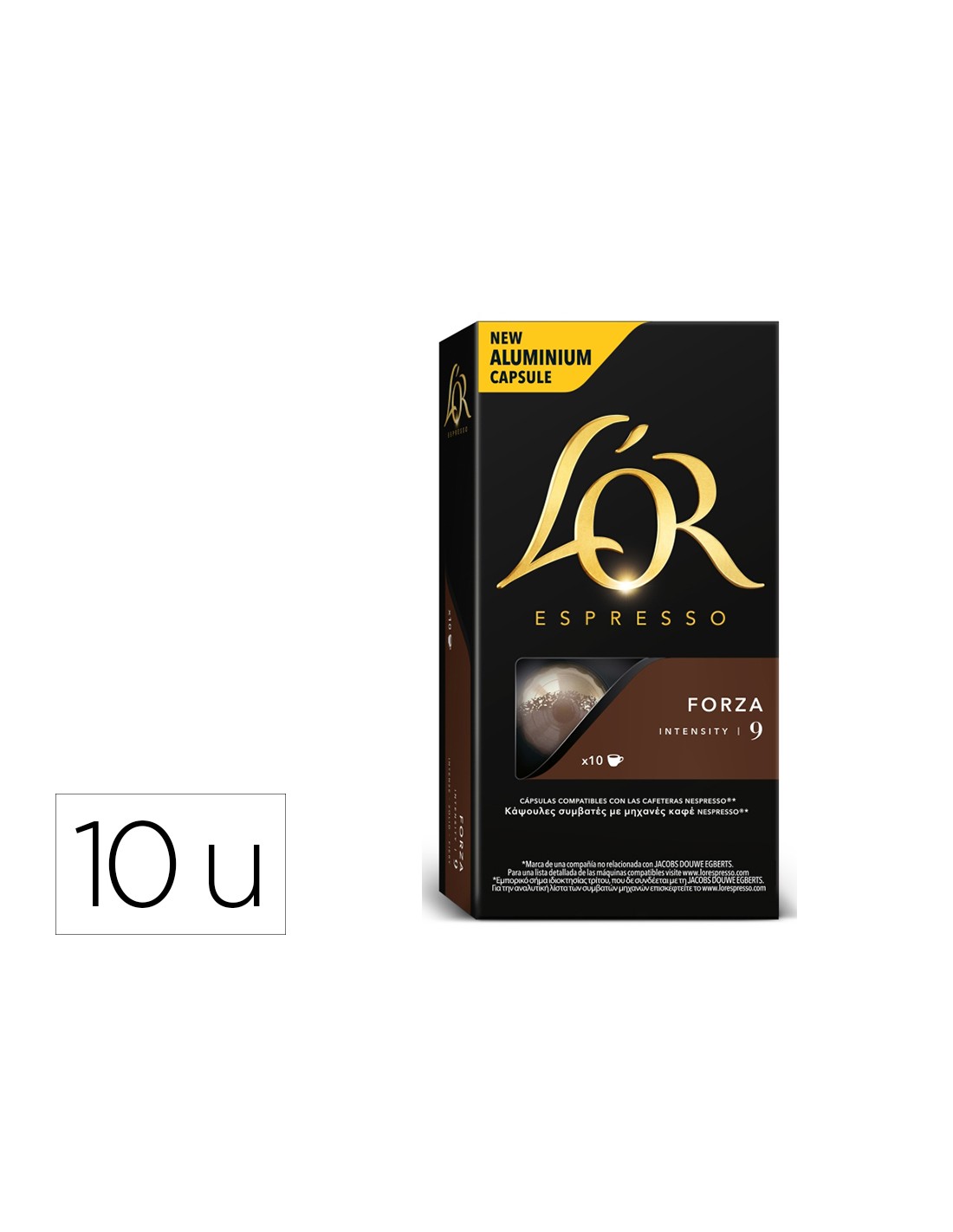 Cafe l or espresso forza fuerza 9 caja de 10 unidades compatible con nespresso