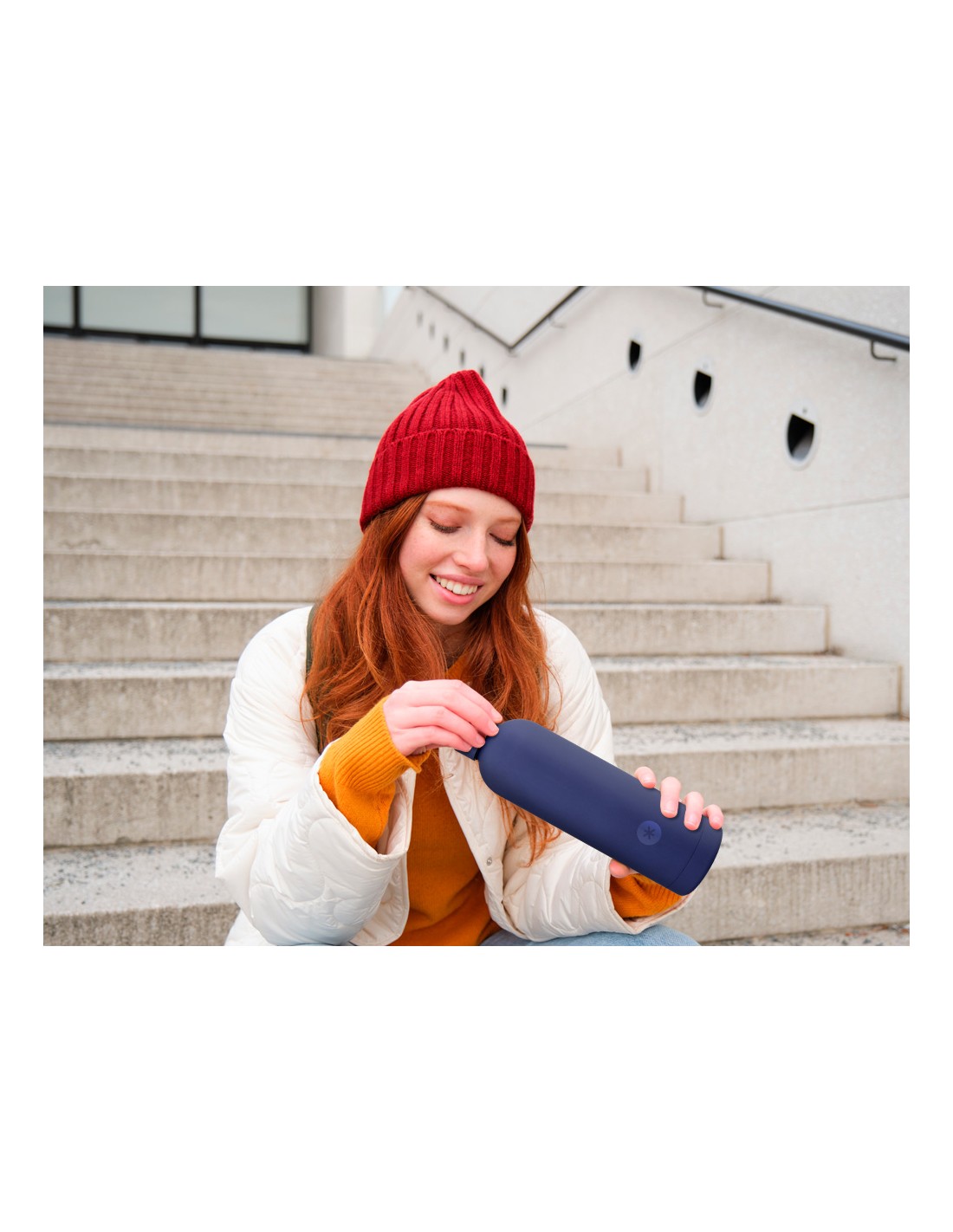 Botella isotérmica Antartik de acero inoxidable libre de BPA. Capacidad 750 ml. Mantiene la temperatura del líquido contenido, tapón de rosca hermético. Mantiene frío 24h. Calor 12 h. Sin condensación, doble capa de acero.El uso de botellas reutilizables contribuye a reducir el consumo de plást ico. Color azul.