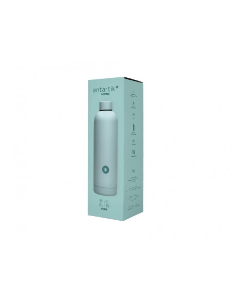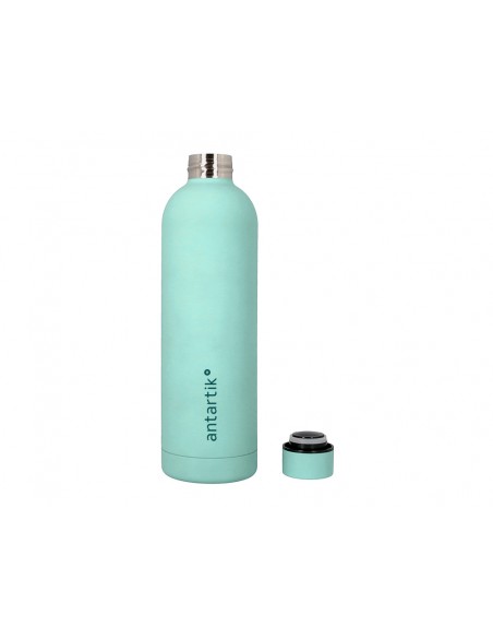 Botella isotérmica Antartik de acero inoxidable libre de BPA. Capacidad 750 ml. Mantiene la temperatura del líquido contenido, tapón de rosca hermético. Mantiene frío 24h. Calor 12 h. Sin condensación, doble capa de acero.El uso de botellas reutilizables contribuye a reducir el consumo de plást ico. Color menta.