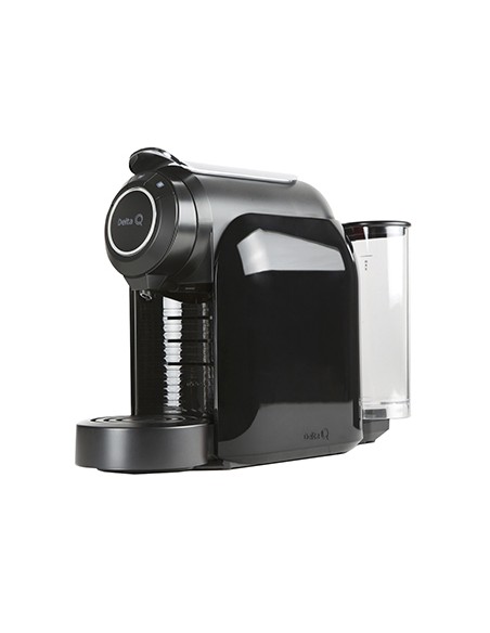 Cafetera de capsulas de café y té Delta Q. Bajo consumo. Teclas de mando Botón on-off, extracción de expreso 35 ml, extracción de café 50 ml. Interrupción de la extracción. Botones de extracción programables. Expulsión automática del residuo de la cápsula utilizada. Contenedor de hasta 10 cápsulas usadas. Depósito de 1,1 l. Capacidad del depósito para gotas 0,30 l. Presión 19 bares. Potencia 1.200 W. Medidas 265 x 307 x 205 mm. Peso 4 kg.