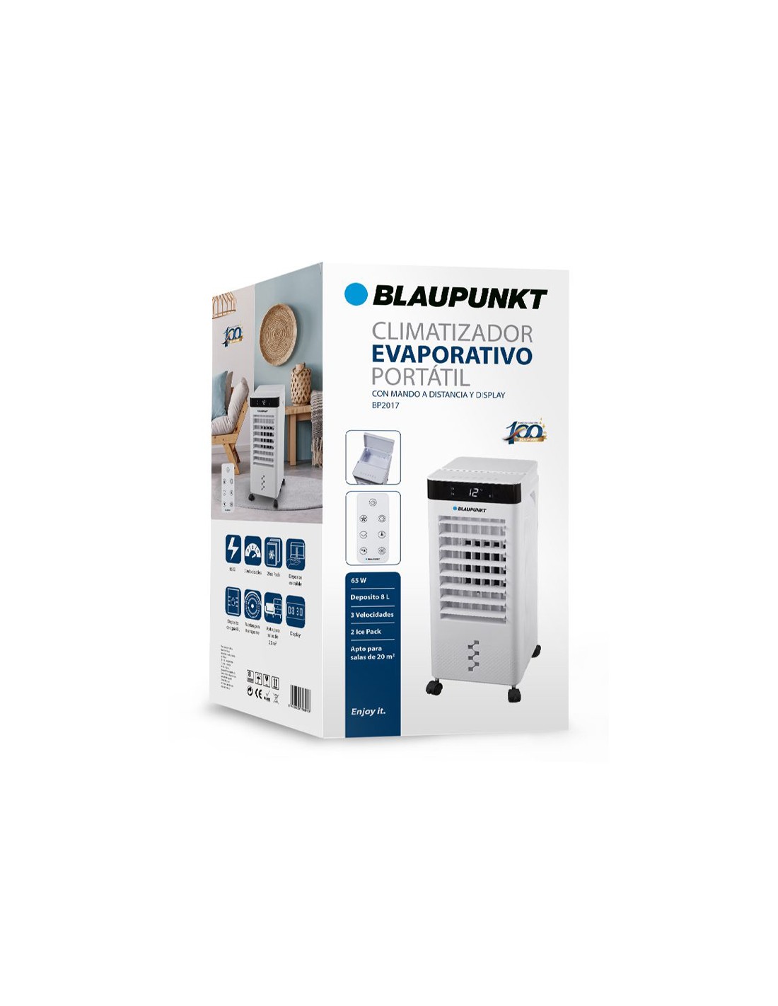 Climatizador evaporativo blaupunkt 65w deposito 8l 3 velocidades hasta 20 m2 con ruedas y mando color blanco