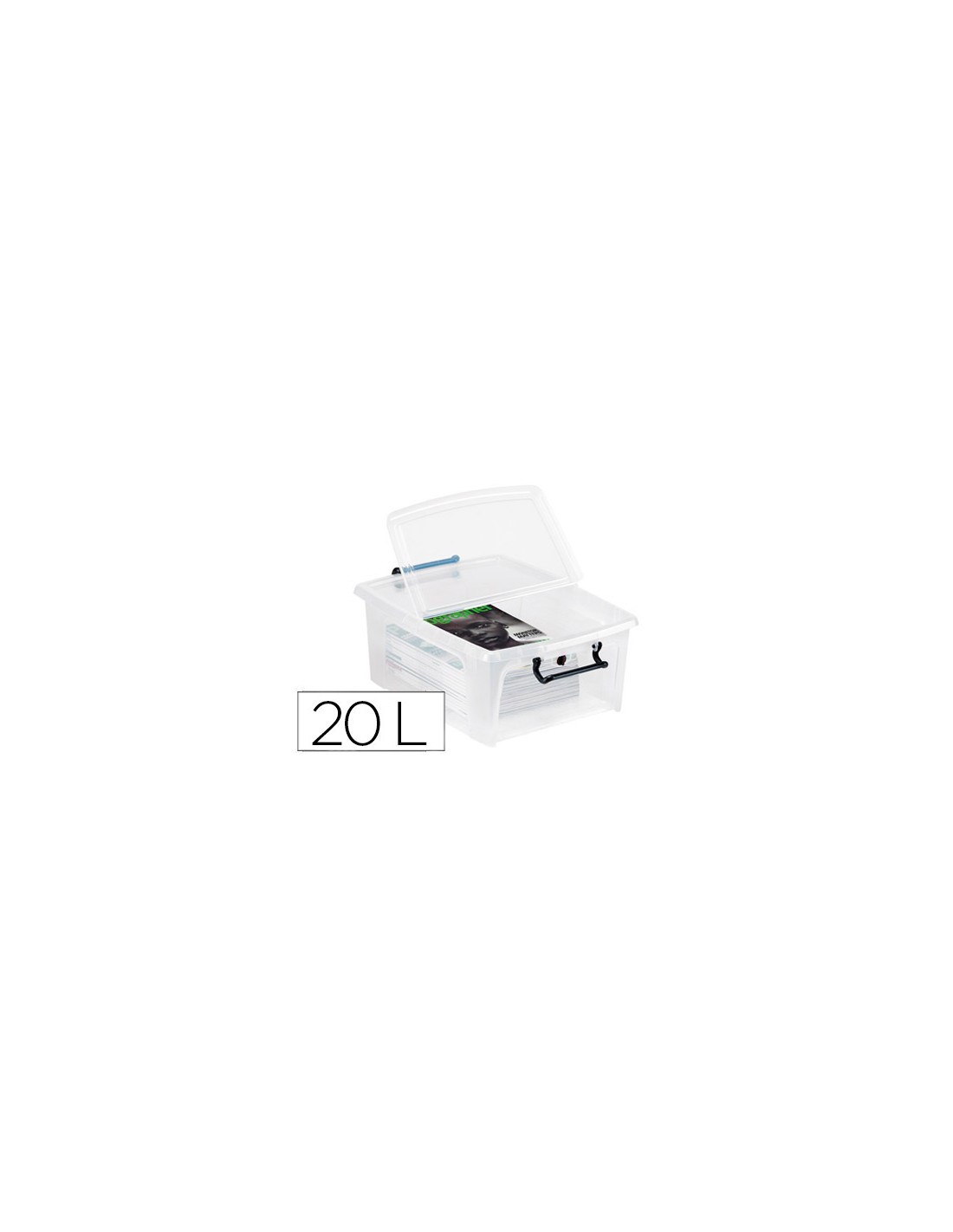 Contenedor plastico cep 20 litros 190x460x170 mm transparente con tapa y cierre hermetico