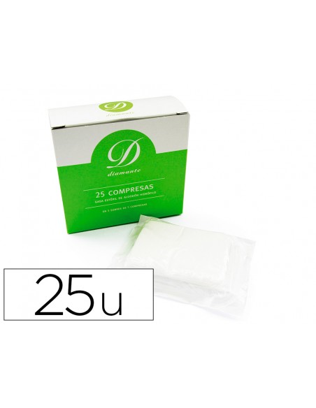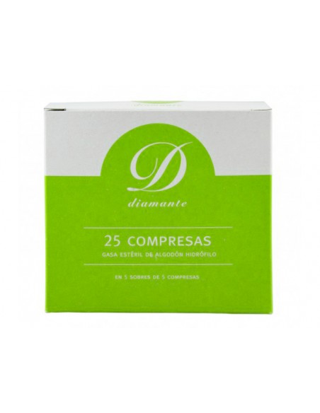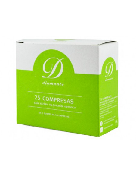 APÓSITO ESTERIL DE ALGODÓN HIDRÓFILO. UTILIZADAS EN PRIMEROS AUXILIOS. ESTÁN LIBRES DE GÉRMENES Y NO SE DESPRENDEN FLAMENTOS EN LA EXTENSION DE LA PIEL DONDE SE TRATA. PERMITE EVITAR INFECCIONES EN HERIDAS ABIERTAS, IMPIDIENDO QUE AGENTES PATÓGENOS PASEN A TRAVES DE LOS VENDAJES. OTRAS DE SUS FUNCIONES SON COMPRIMIR LA ZONA A TRATAR, ABSORBEN LO QUE EXUDE INMOVILIZAN O LIMPIAN HERIDAS. CAJA DE 25 UNIDADES