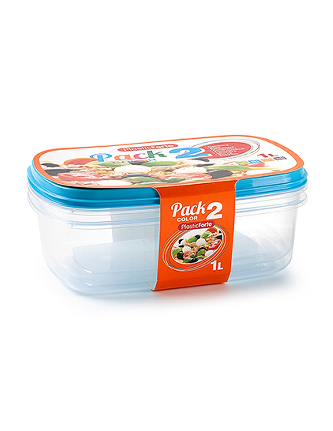 PLASTICFORTEFiambrera plasticforte transparente tapa color 1 litros pack 2 unidades