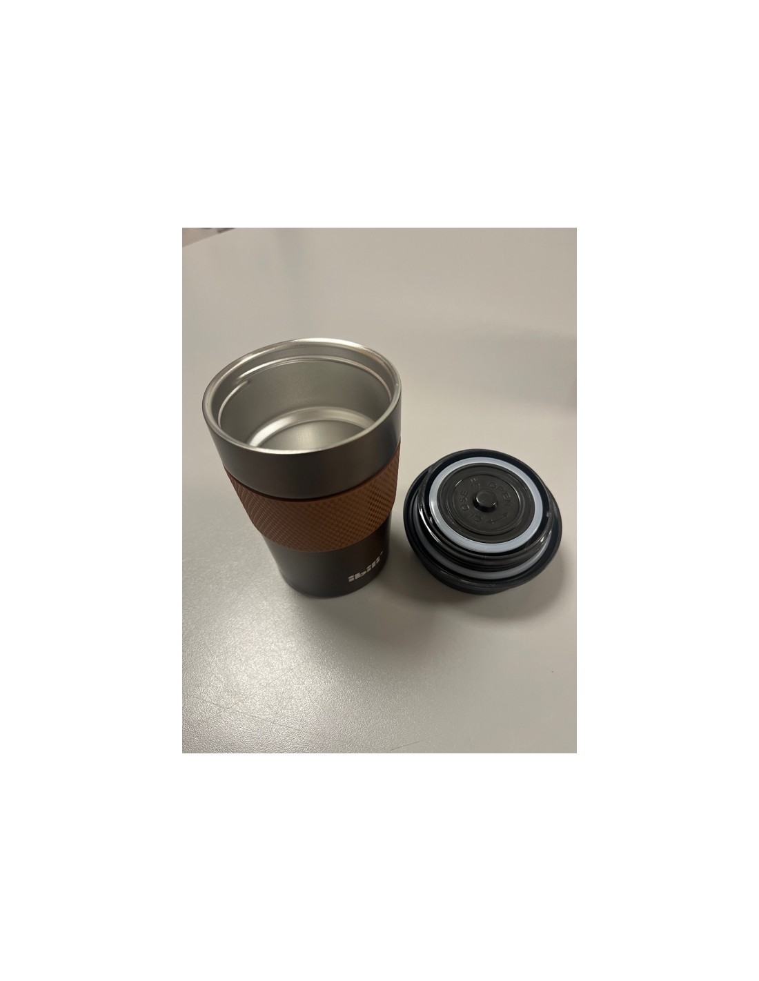 Vaso luxe café doble pared. Capacidad 360 ml. Apertura rosca hermética. Simple limpieza. Grip ergonómico. Libre BPA