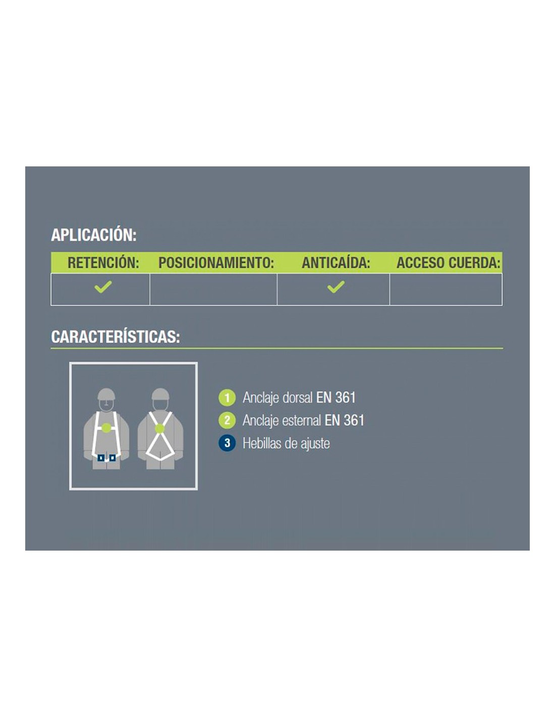 Arnes anticaidas faru dorsal y esternal basico con enganche cincha 45 mm